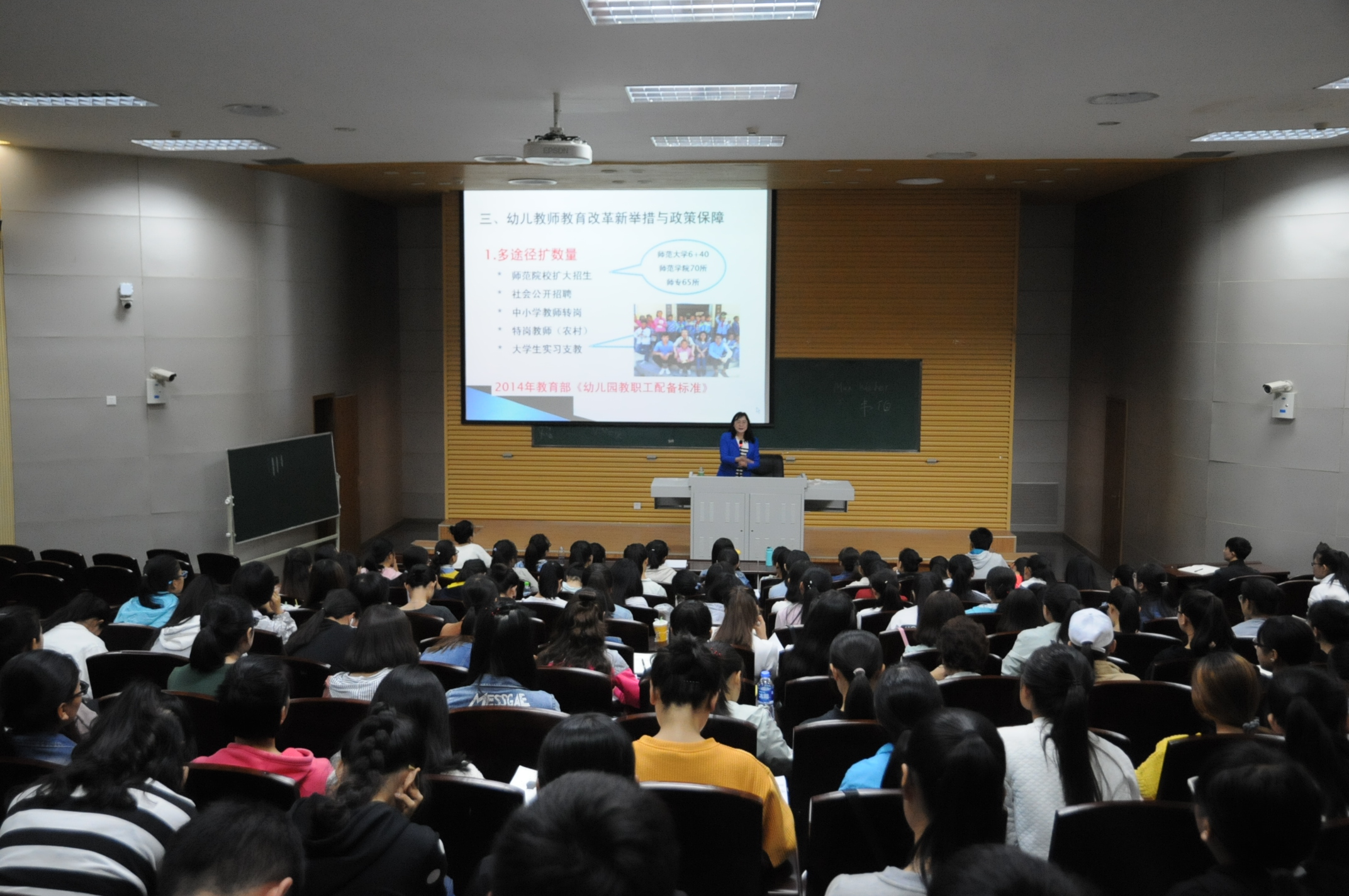 9月29日上午8点,公司2017级新生《专业导引课》第二堂课在新校区报告一厅开讲。本次的专业导引课由公司学前教育系郑名教授主讲。2017级教育学类1班、教育学类2班、特殊教育1班、学前教育1班4个班级157名同学参加了该课。