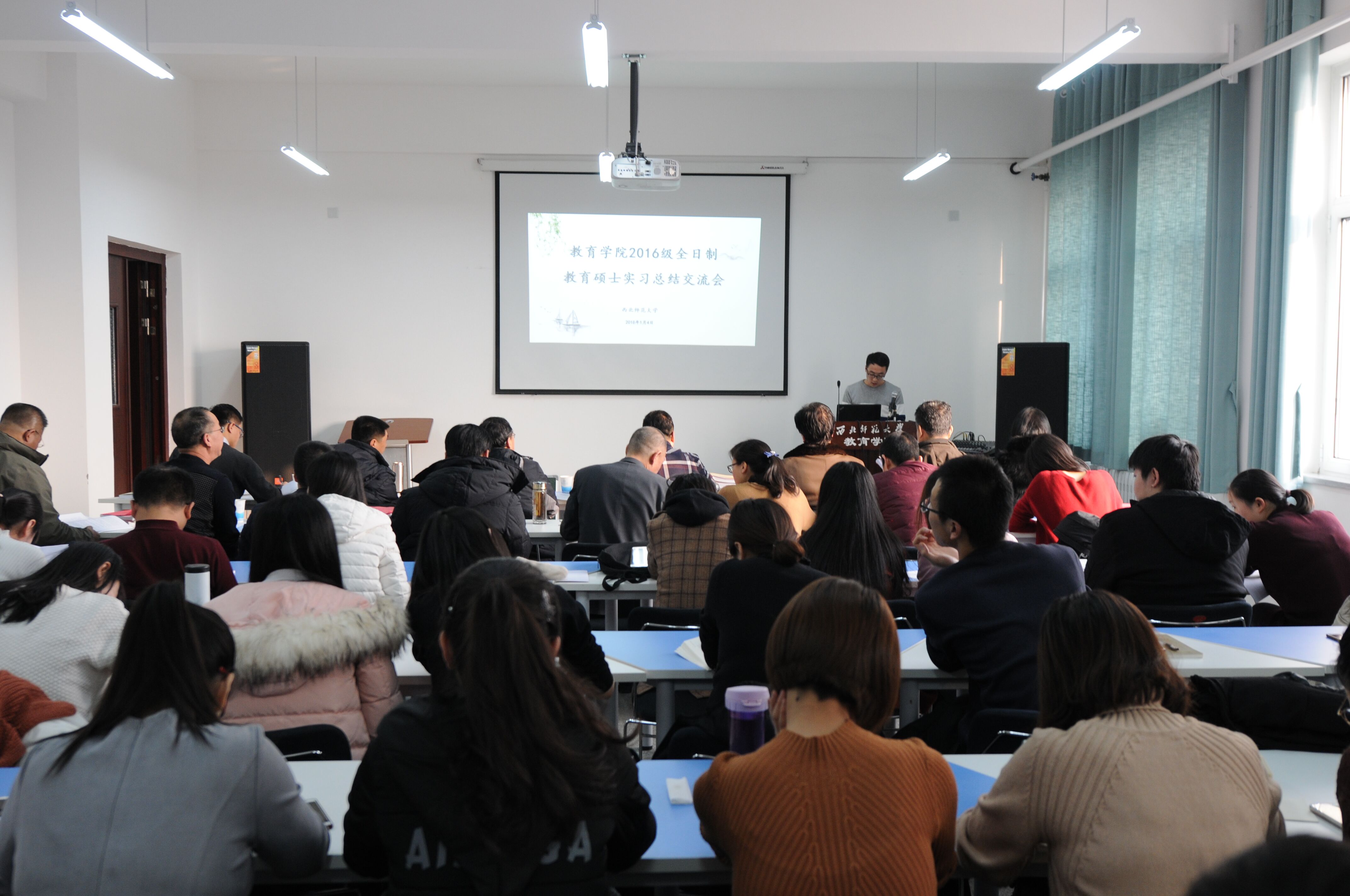 2018年1月4日下午,公司在特教大楼527会议室举行了2016级全日制教育硕士实习总结交流会,参加本次交流会有2016级全体全日制教育硕士研究生、各学科负责人和全体实习指导教师。