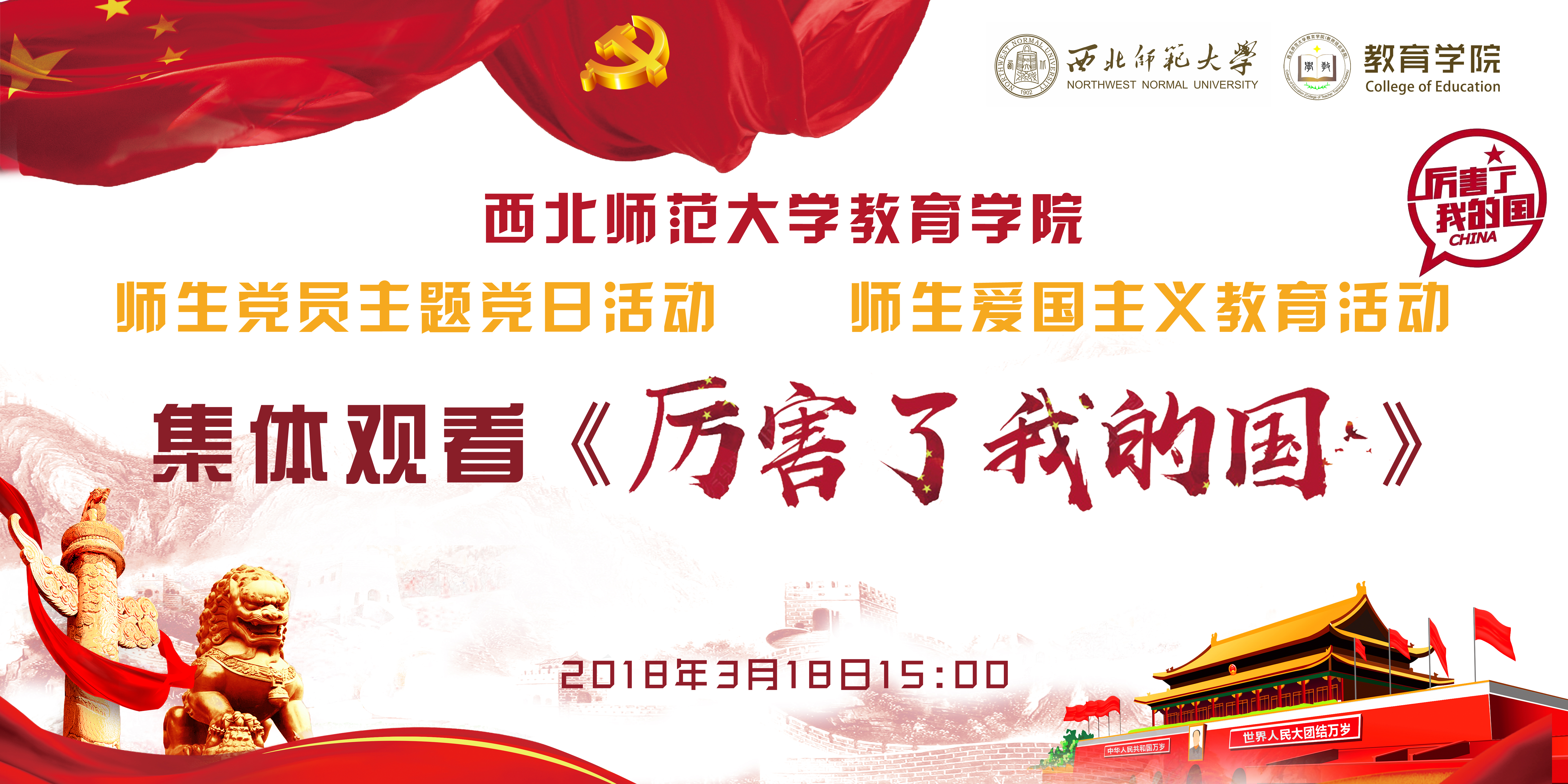 3月18日下午,教育公司开展了师生党员主题党日活动暨爱国主义教育活动――集体观看《厉害了 我的国》。参加观影活动有公司教职工党员、研究生党支部、本科生党支部等166名党员和入党积极分子,切实感受党的十八大以来党和国家在这五年中发生的历史性变革及取得的辉煌成就。