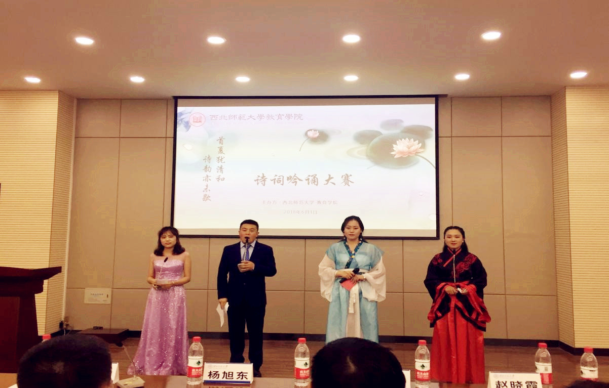 来自教育公司12个专业的50名研究生参加了比赛。经过精彩的角逐,最终王玥等同学的《山居秋暝》获得一等奖;杨娜娜等同学的《木兰诗》、杨蕾等同学的《师承》、郭强同学的《将进酒》、杨婉洁等同学的《江南》获得二等奖;贺彩芳等同学的《阳关三叠》、张晓梅等同学的《山居秋暝》、贺倩等同学的《少年中国说》、秦琳娜等同学的《钗头凤》获得三等奖。