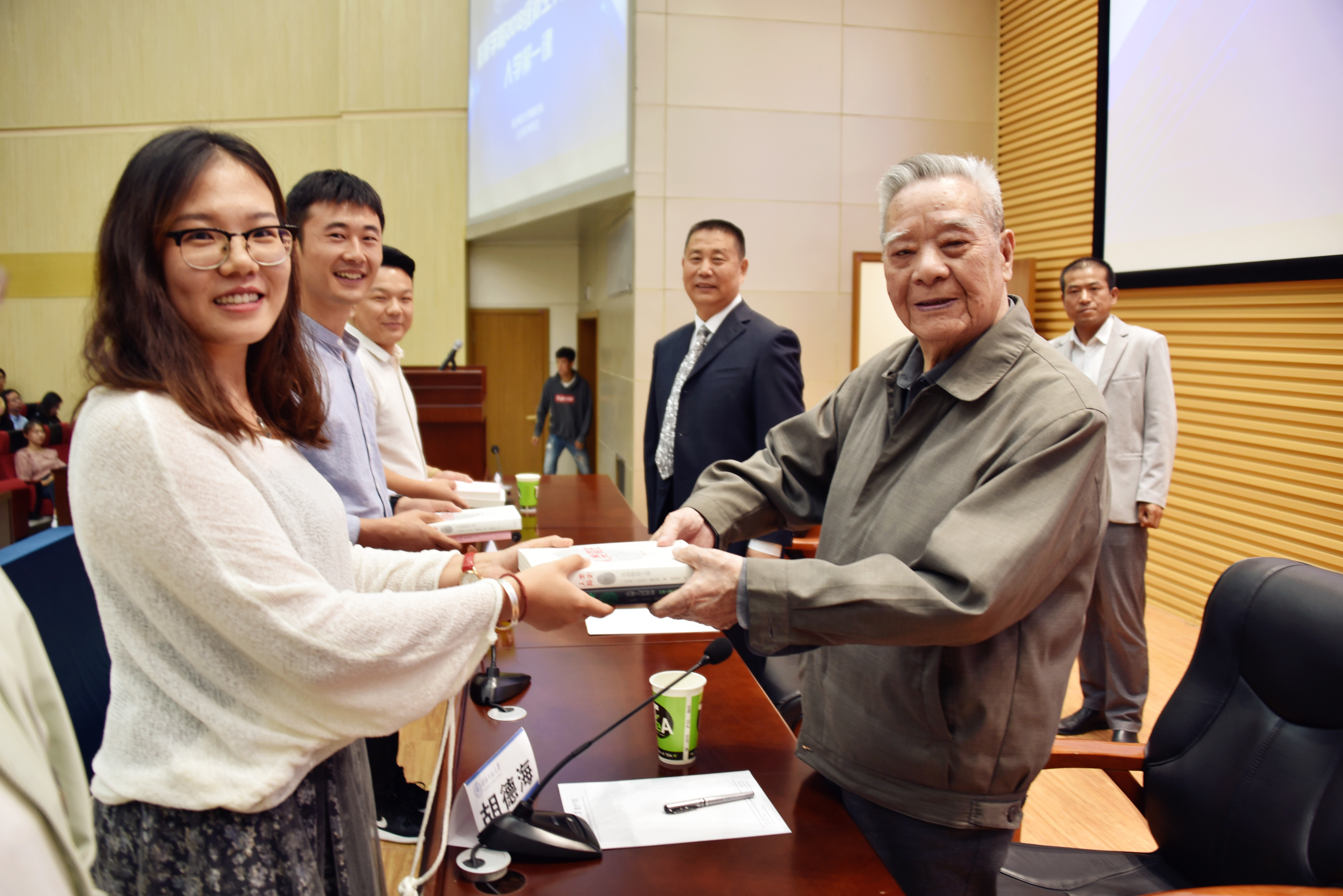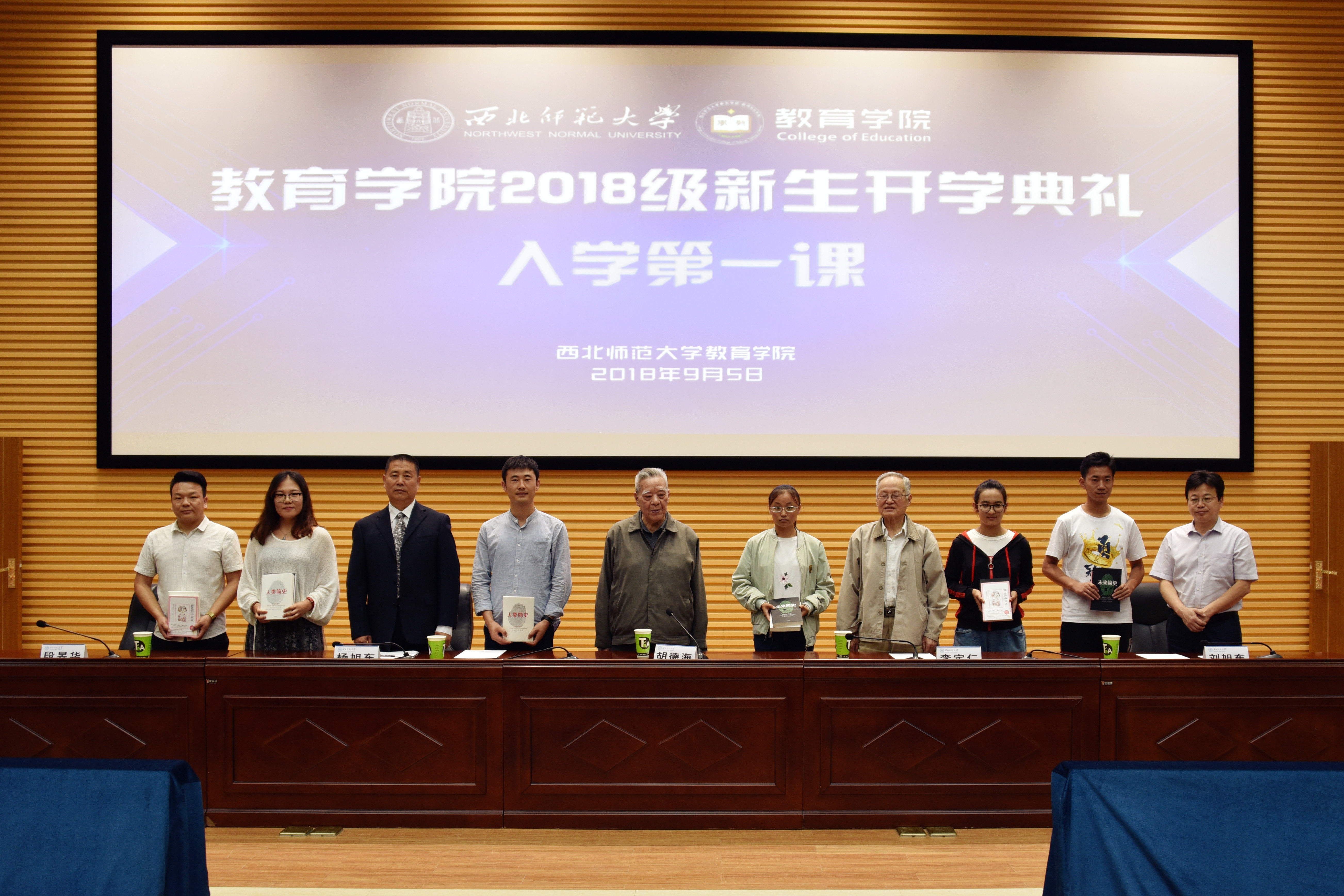 最后,公司举行了新生赠书仪式。胡德海、李定仁先生、刘旭东教授、杨旭东向新生代表赠送了《未来简史》、《大学何为》、《中国哲学简史》等经典书籍,希望同学们多读书、勤思考。
