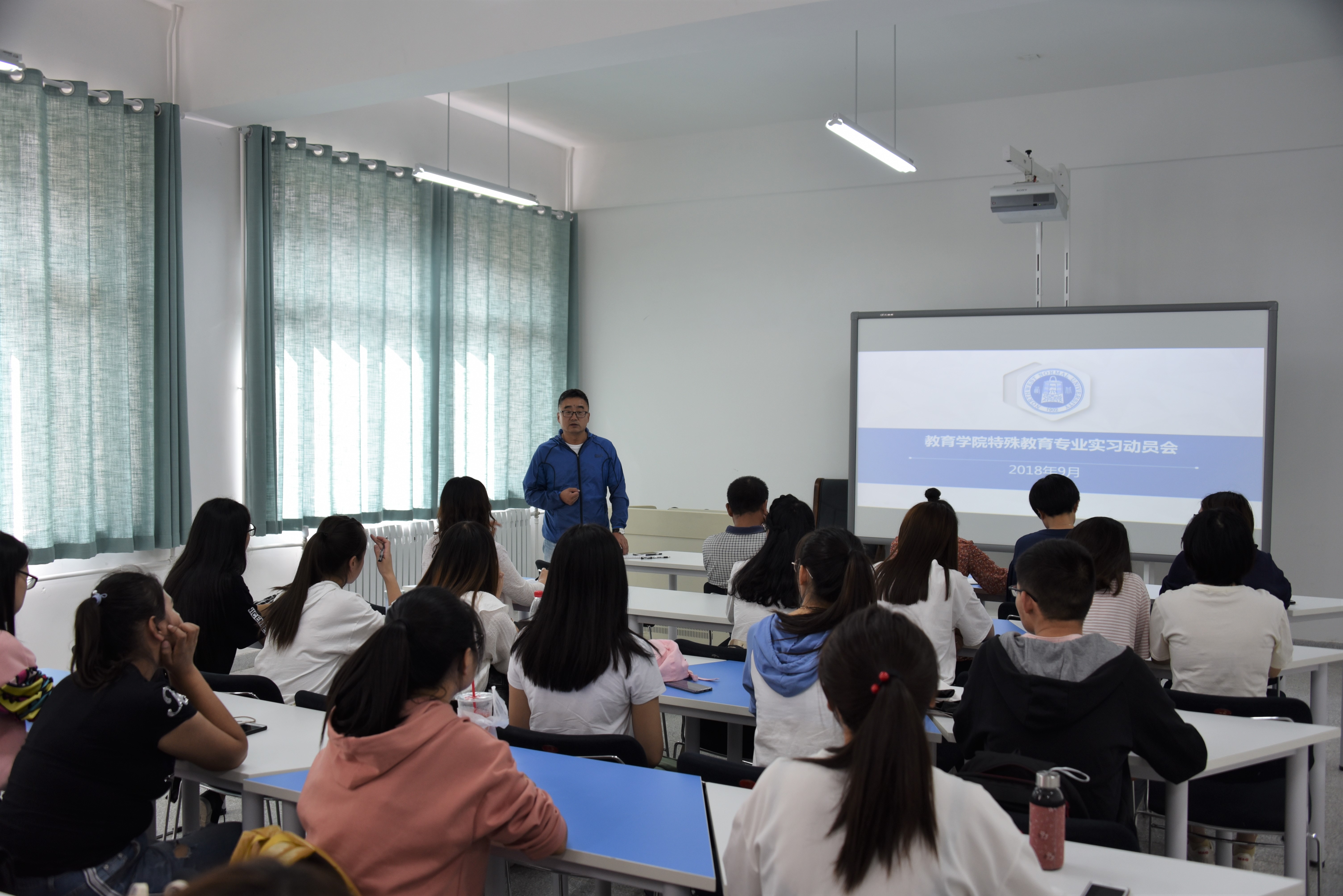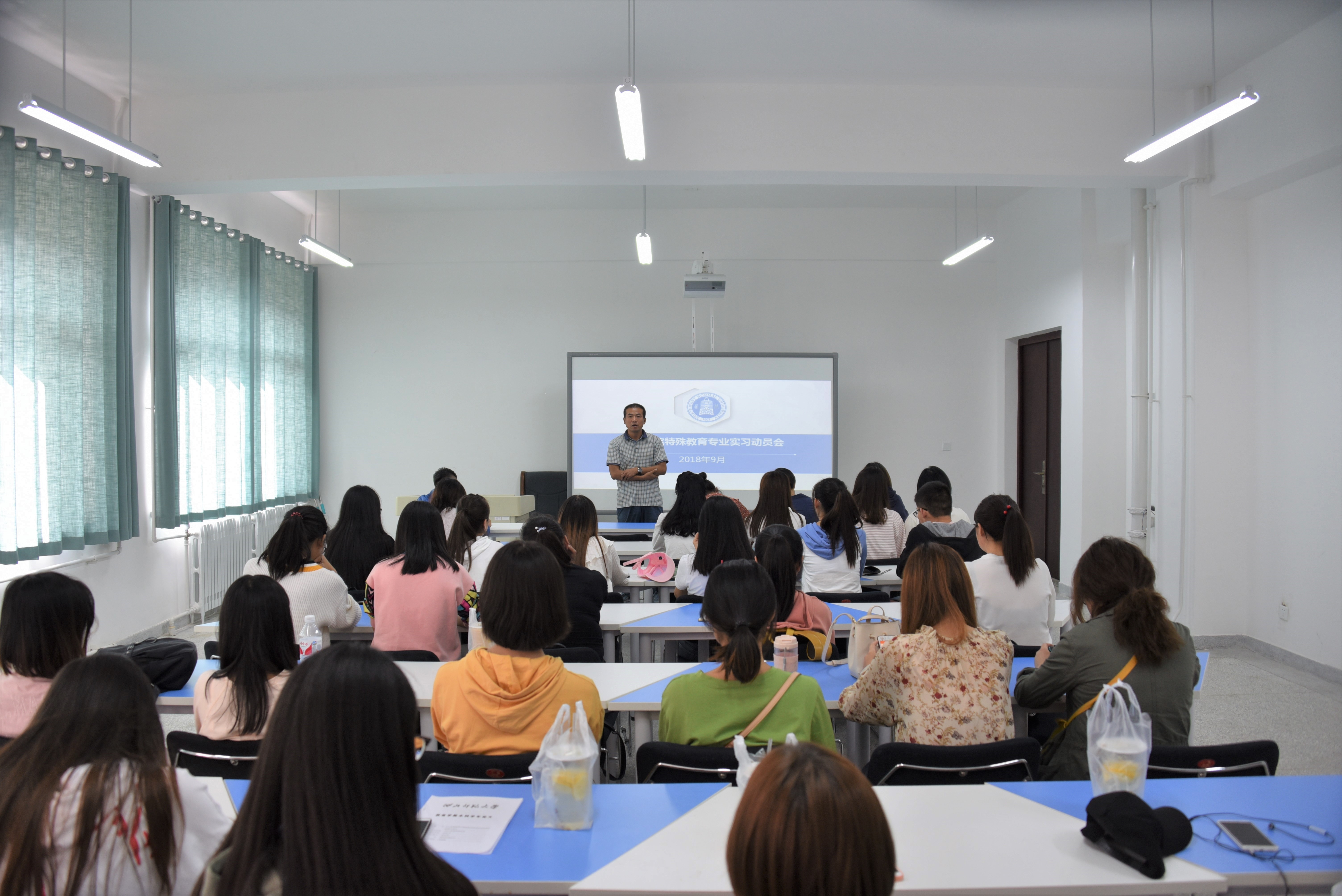 2018年9月11日下午,公司召开2015级特殊教育专业实习动员会。公司党委副书记段昱华,特殊教育系主任杨中枢教授,实习指导老师刘海健讲师、瞿婷婷讲师、陈娇讲师,2015级特殊教育专业29名同学参加了动员会。