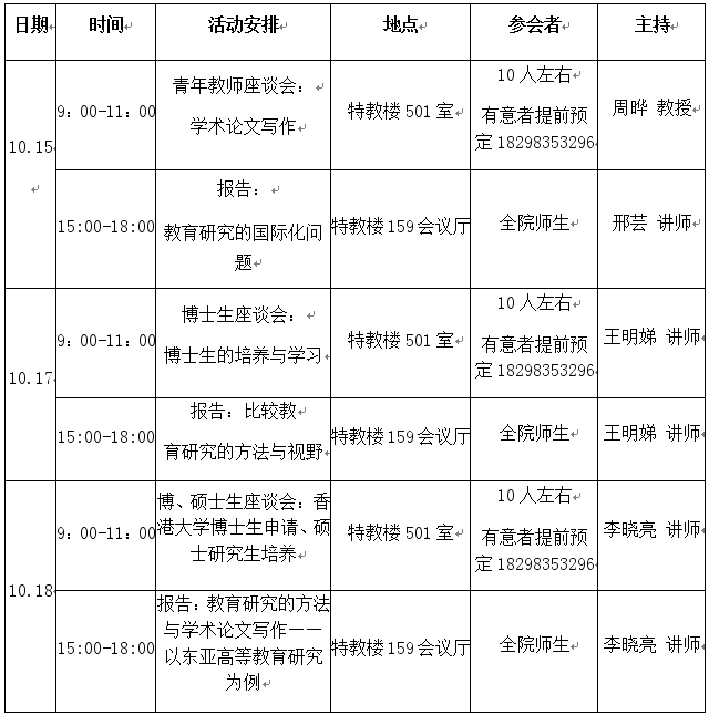 应公司邀请,香港大学教育公司副经理杨锐教授将来公司做系列学术系列报告,具体安排如下: