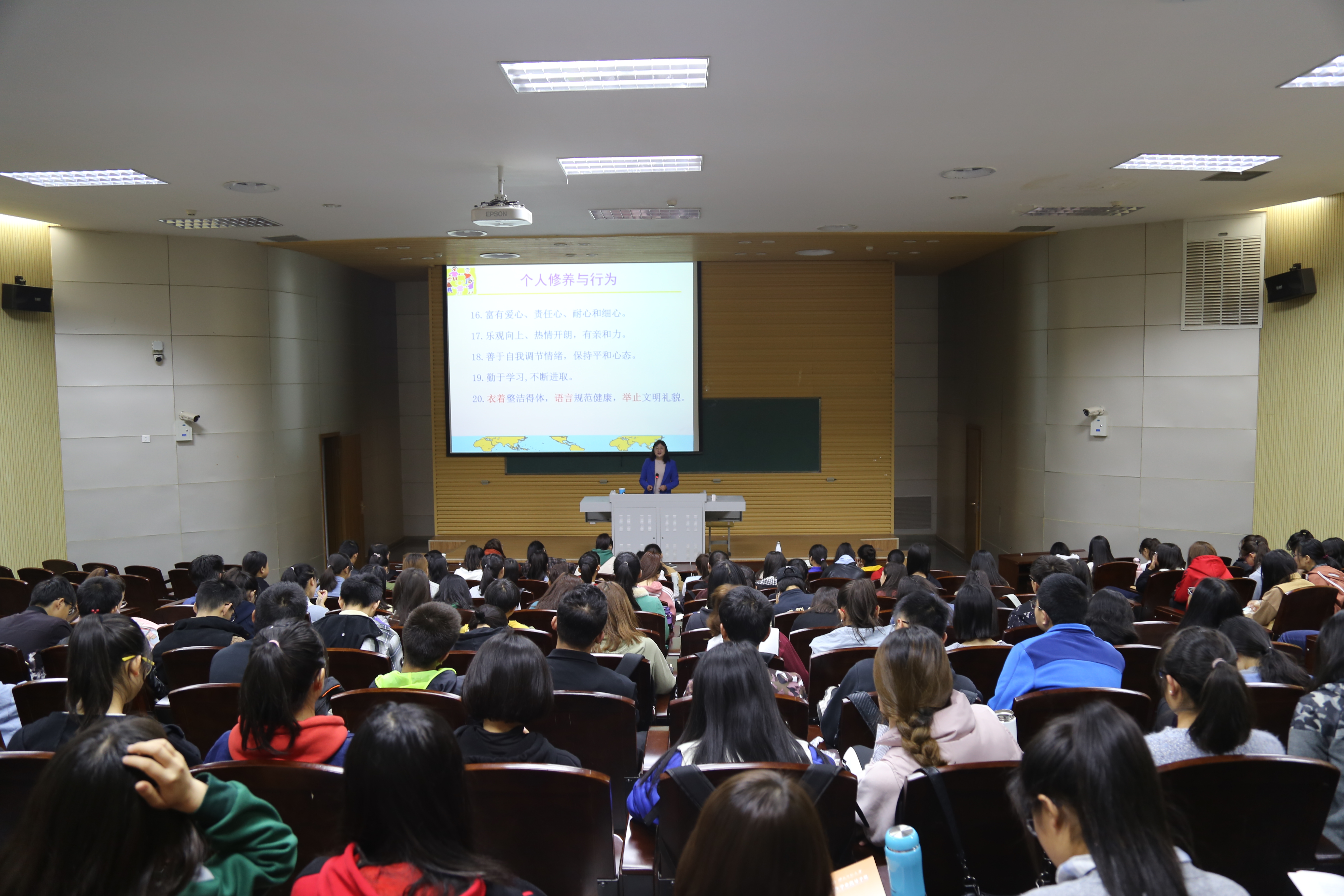 2018年10月19日,教育公司2018级新生《专业导引课》在新校区综合楼报告一厅如期举行。本次课程由郑名教授主讲,教育公司2018级教育学类1班、教育学类2班、特殊教育1班和学前教育1班共144名同学聆听课程。