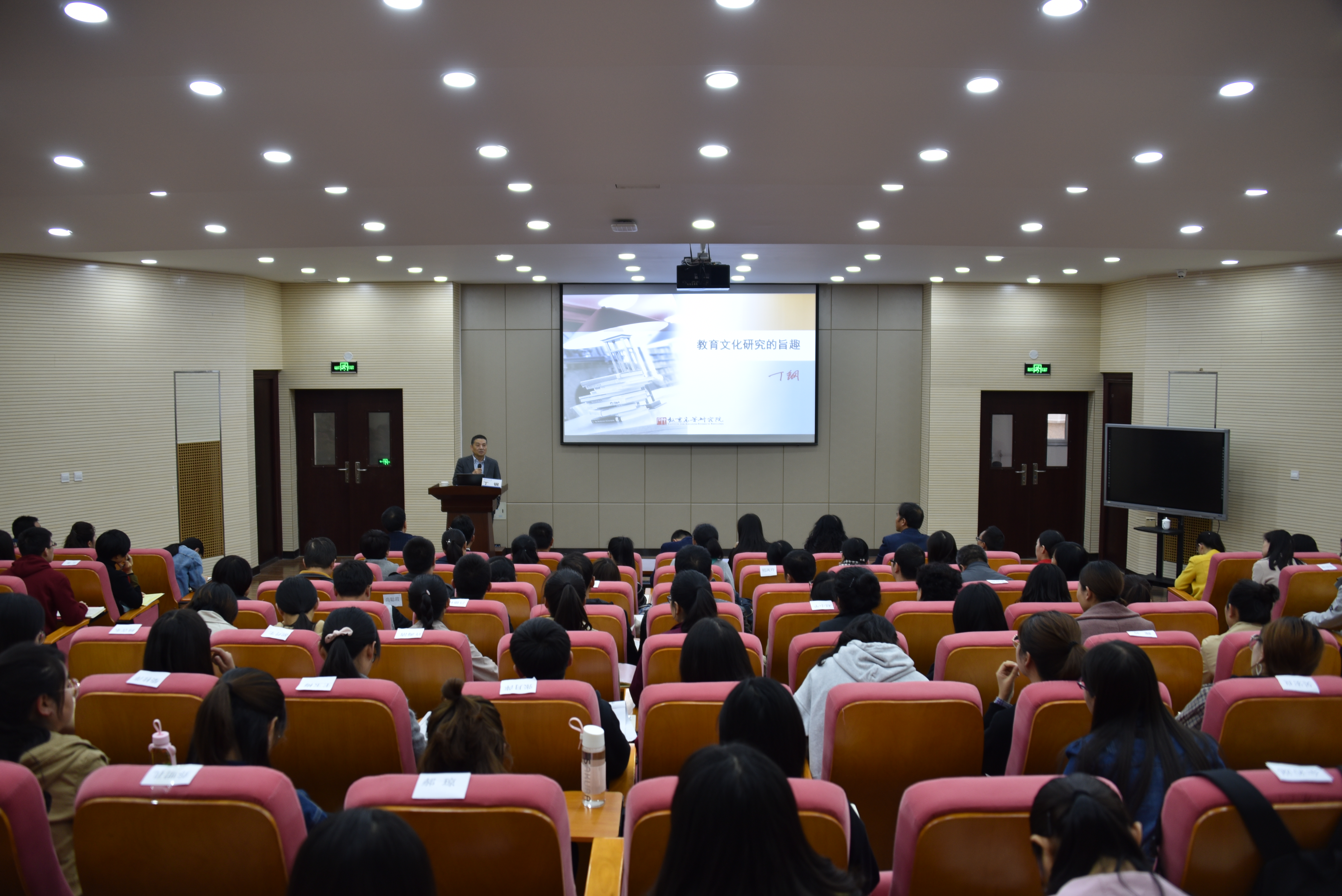 报告会上,丁钢教授结合自身的求学经历和研究成果,理论联系实际,指出做文化研究需要人文基础,并对教育文化研究的历史进行了系统的回溯。同时,丁钢教授通过对比美国的文化研究与我国早期的教育文化研究,说明教育文化研究是将教育作为深层的社会文化活动的重要影响因素,研究教育文化与社会生活的联系,强调教育活动的文化内涵和各类文化实践的教育功用的学科,教育文化研究就是要从教育文化与实践入手,重点考察与聚焦公司领域、公共领域、日常生活和非物质文化遗产中的教育文化现象,用以考察以影像、音乐、美术、戏曲、戏剧、交互媒体、工艺、建筑空间等文化形式为媒介的教育生活。同时,丁钢教授指出了教育文化研究的趋向和特征在于转向考察更广泛的社会群体——尤其是基层社会生活与教育变迁。全面系统阐释了教育文化研究的旨趣问题。