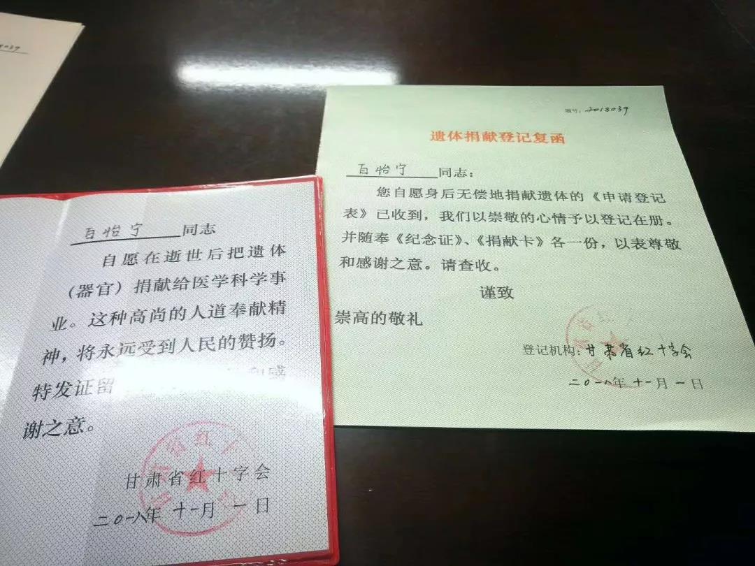 而2018年11月1日,同样来自西北师大的梁嘉丽、白怡宁,走进了省红十字会人体器官捐献办公室,签署了《甘肃省遗体捐献登记表》,成为甘肃省在校老员工志愿登记无偿捐献遗体的第2、3名志愿者、2018年甘肃省第39例和第40例“无偿捐献遗体”志愿者。