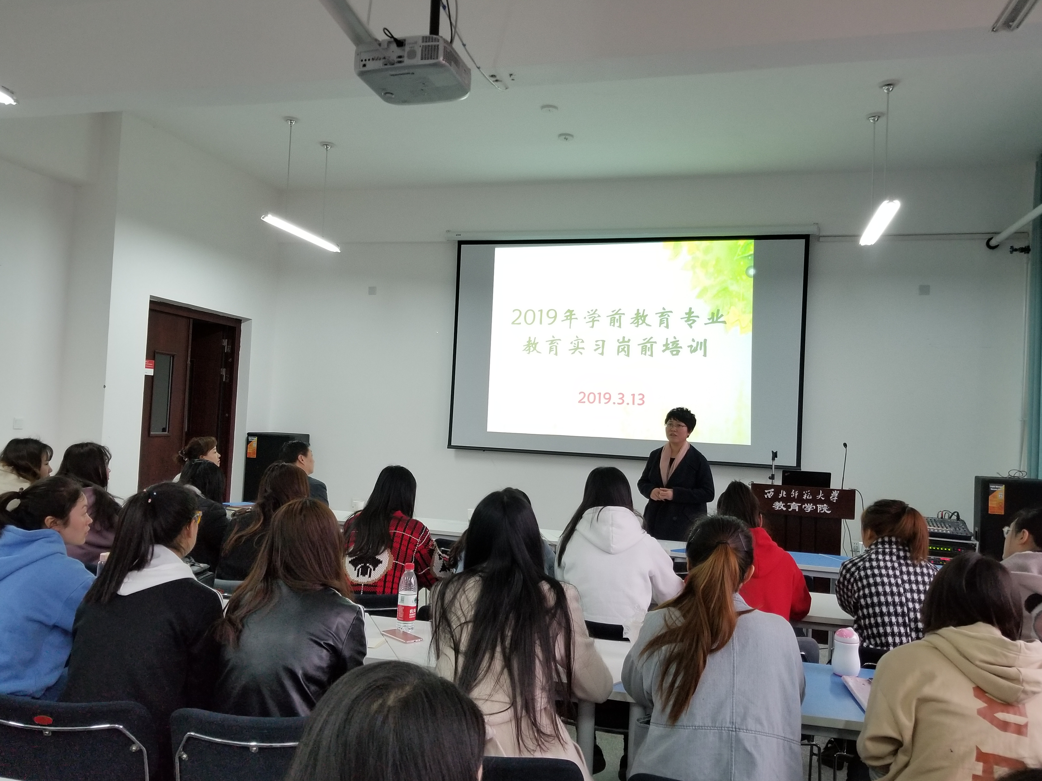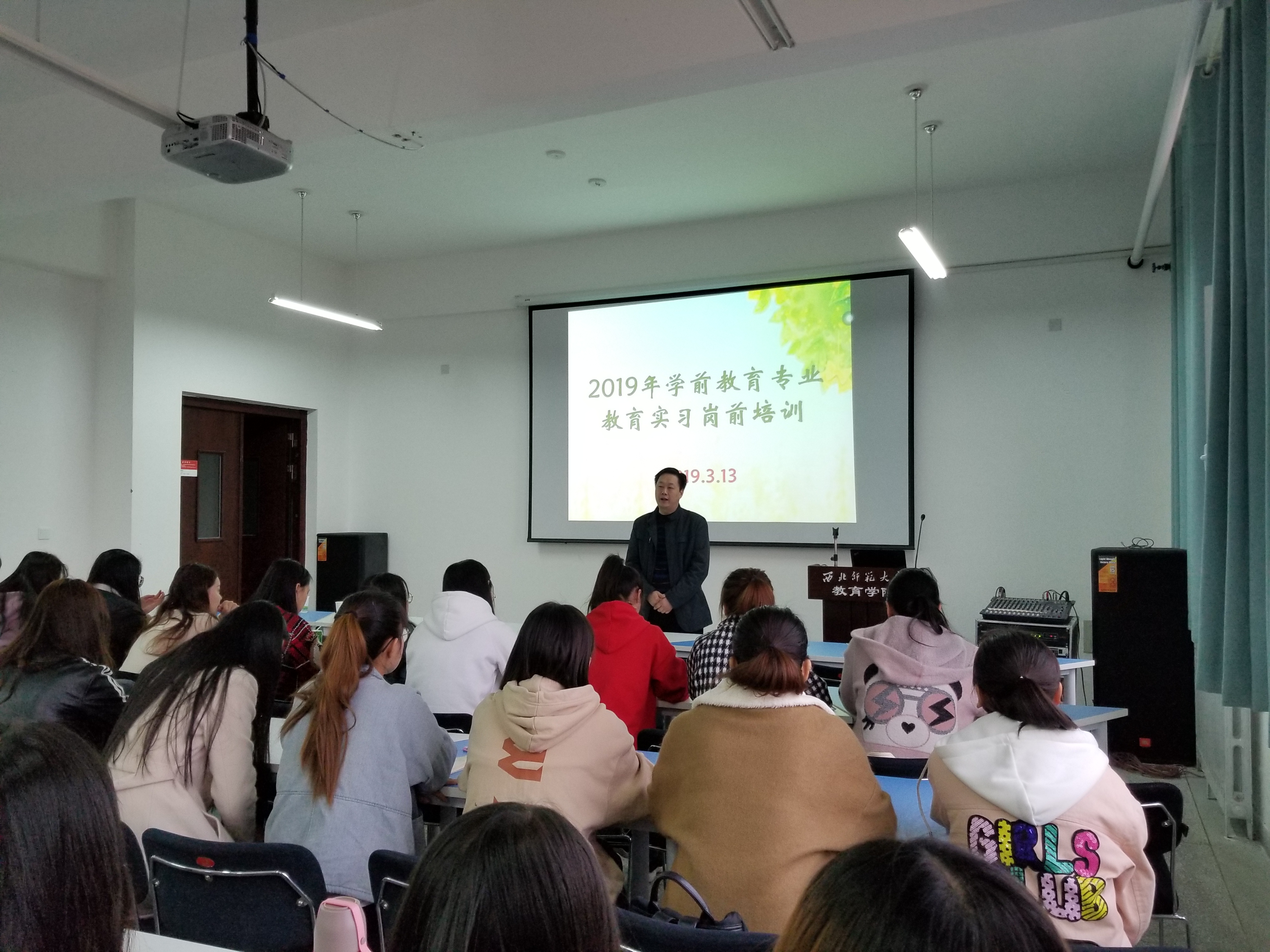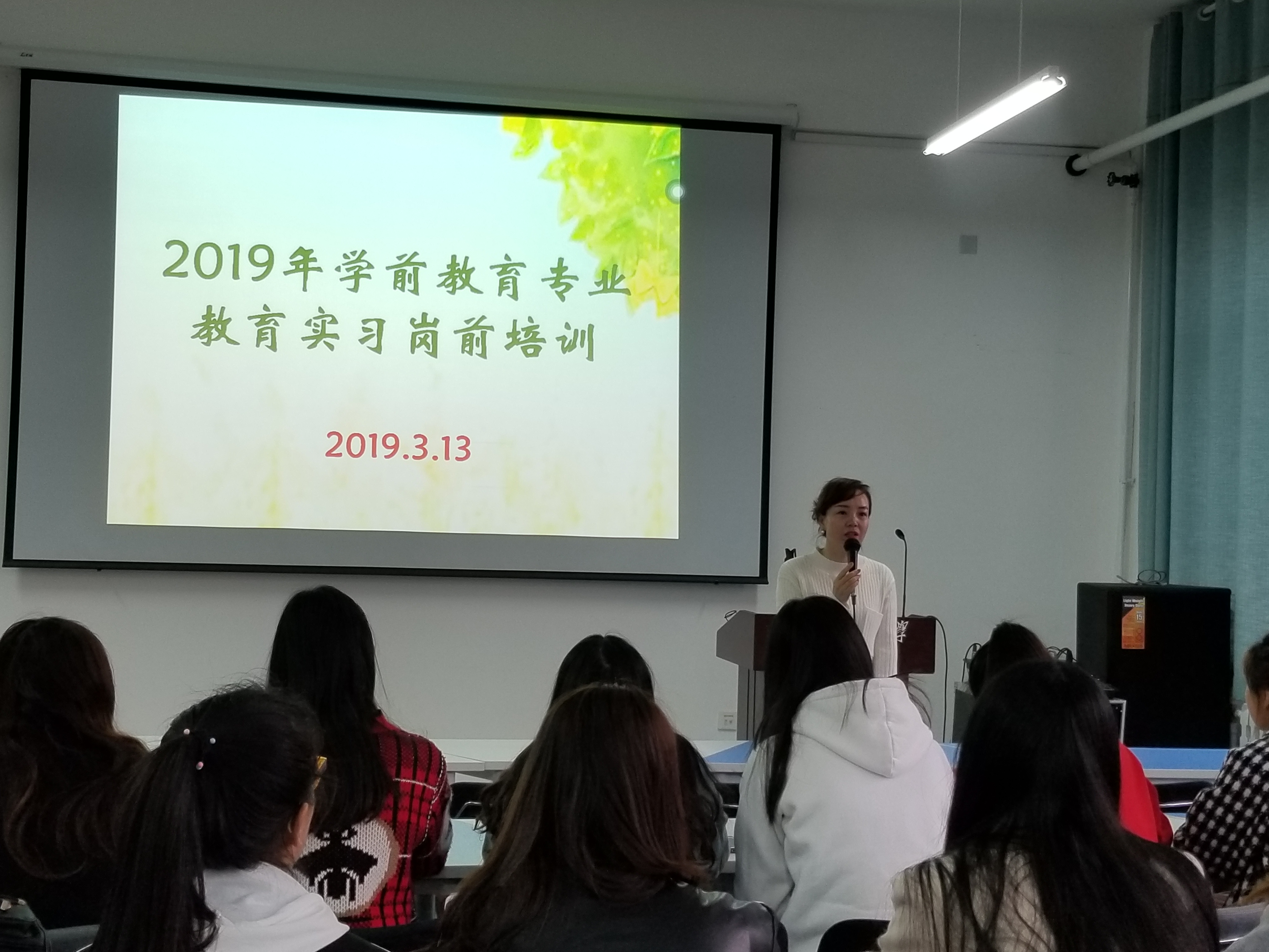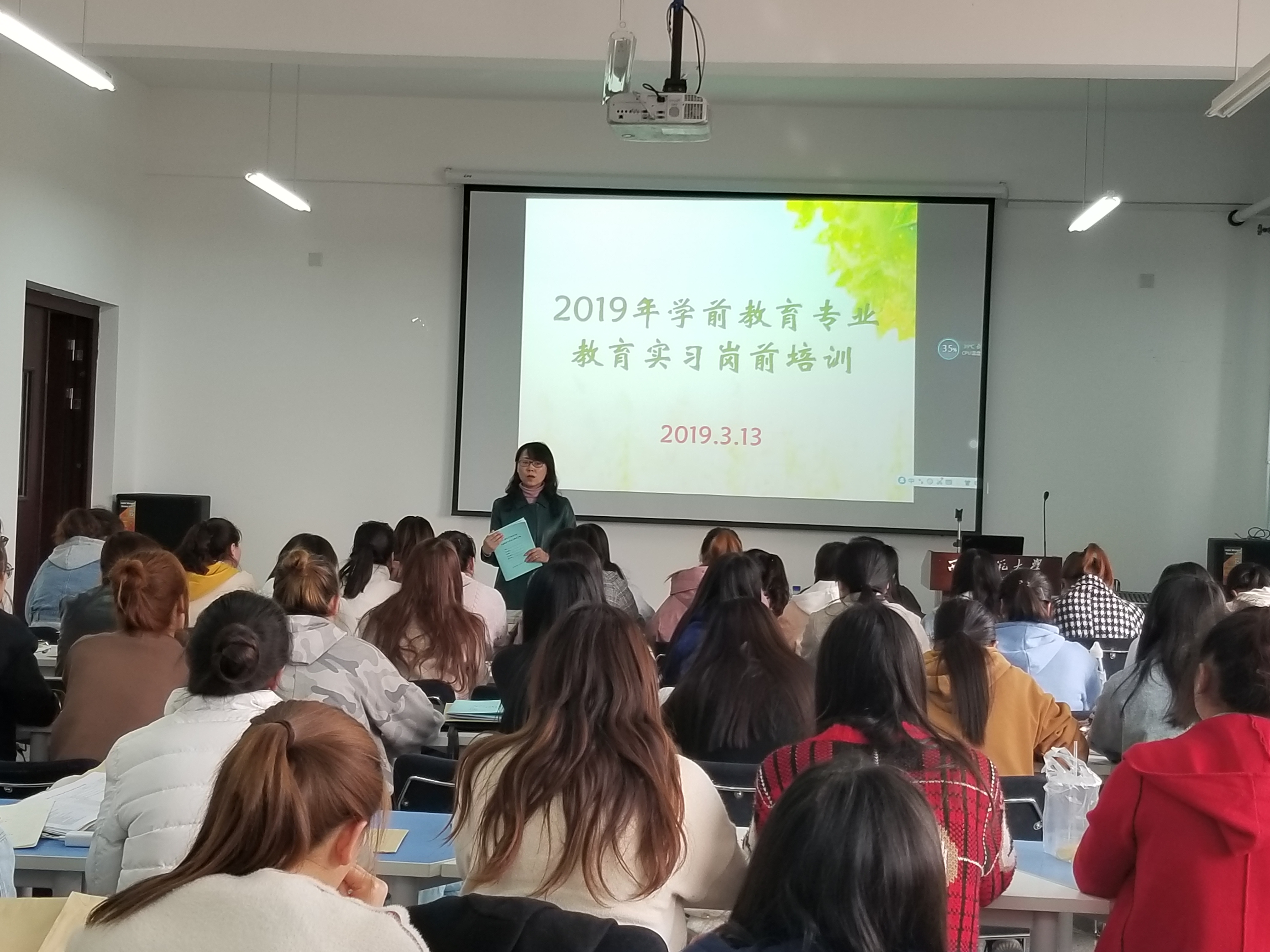 2019年3月13日,公司举办2019年学前教育专业教育实习岗前培训。公司党委书记苏丽蓉,教务处副处长王兴、学前教育系主任孙爱琴、学前教育系教师徐刚和张国艳参加了此次培训活动。即将赴新疆阿克苏、甘肃甘南藏族自治州和甘肃临夏东乡县实习的2016级学前教育专业81名实习员工参加了培训学习。