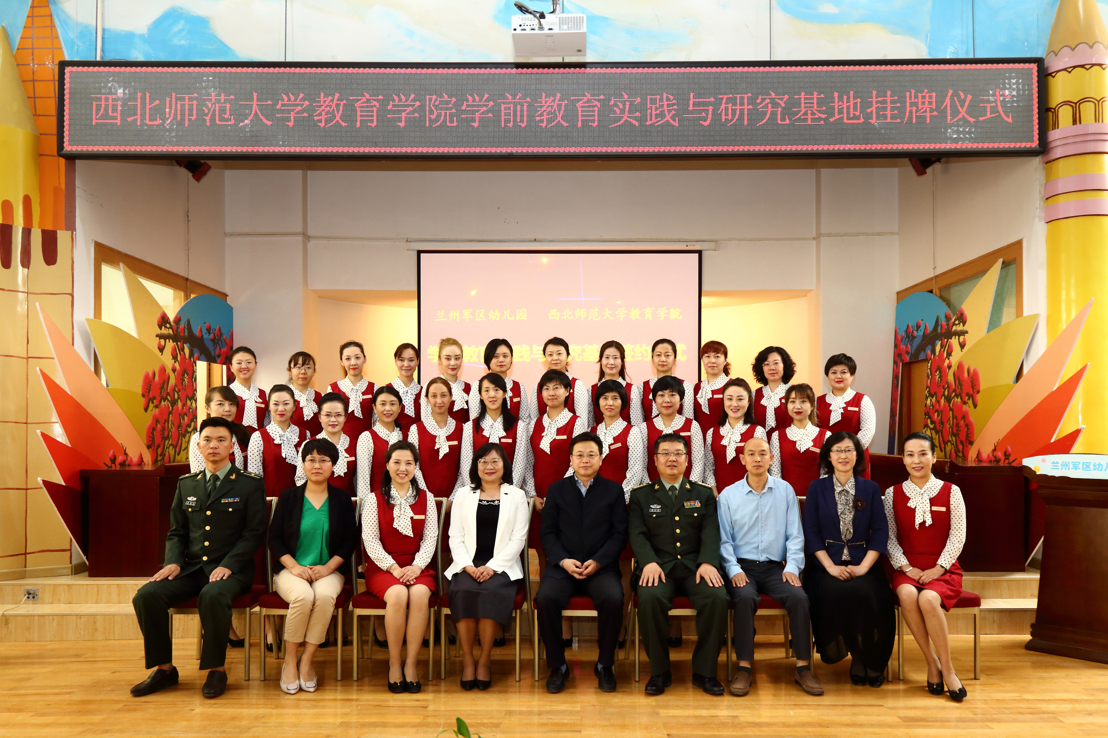 2019年5月15日,公司与兰州军区幼儿园“学前教育实践与研究基地”挂牌暨签约仪式在兰州军区幼儿园举行。经理刘旭东,副经理王卫军,学前教育系主任孙爱琴,学前教育学科负责人参加了签约仪式。兰州军区善后办综合局桑文清、孙慧,军区幼儿园王敏、窦亚年以及幼儿园教职工代表等参加挂牌签约仪式。