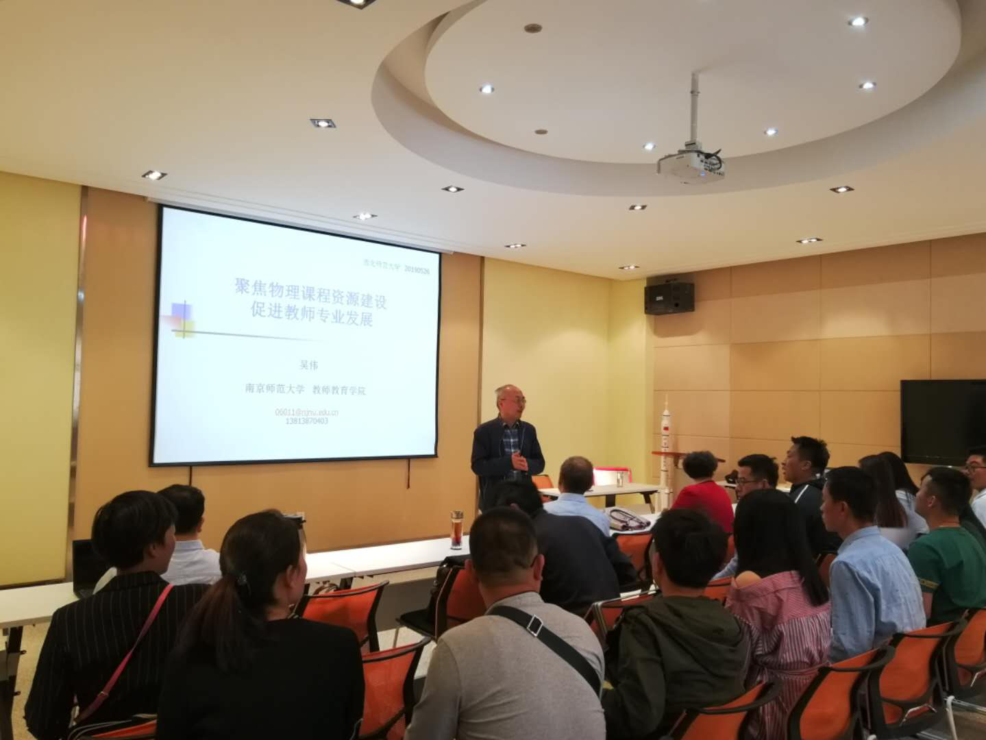 5月26上午8:30,南京师范大学教师教育公司教授、硕士生导师,江苏省物理学会理事,南京物理学会常务理事、秘书长吴伟教授作了题为《聚焦物理课程资源建设促进教师专业发展》的学术讲座此次讲座由何述平副教授主持,相关专业师生20余人参加讲座。