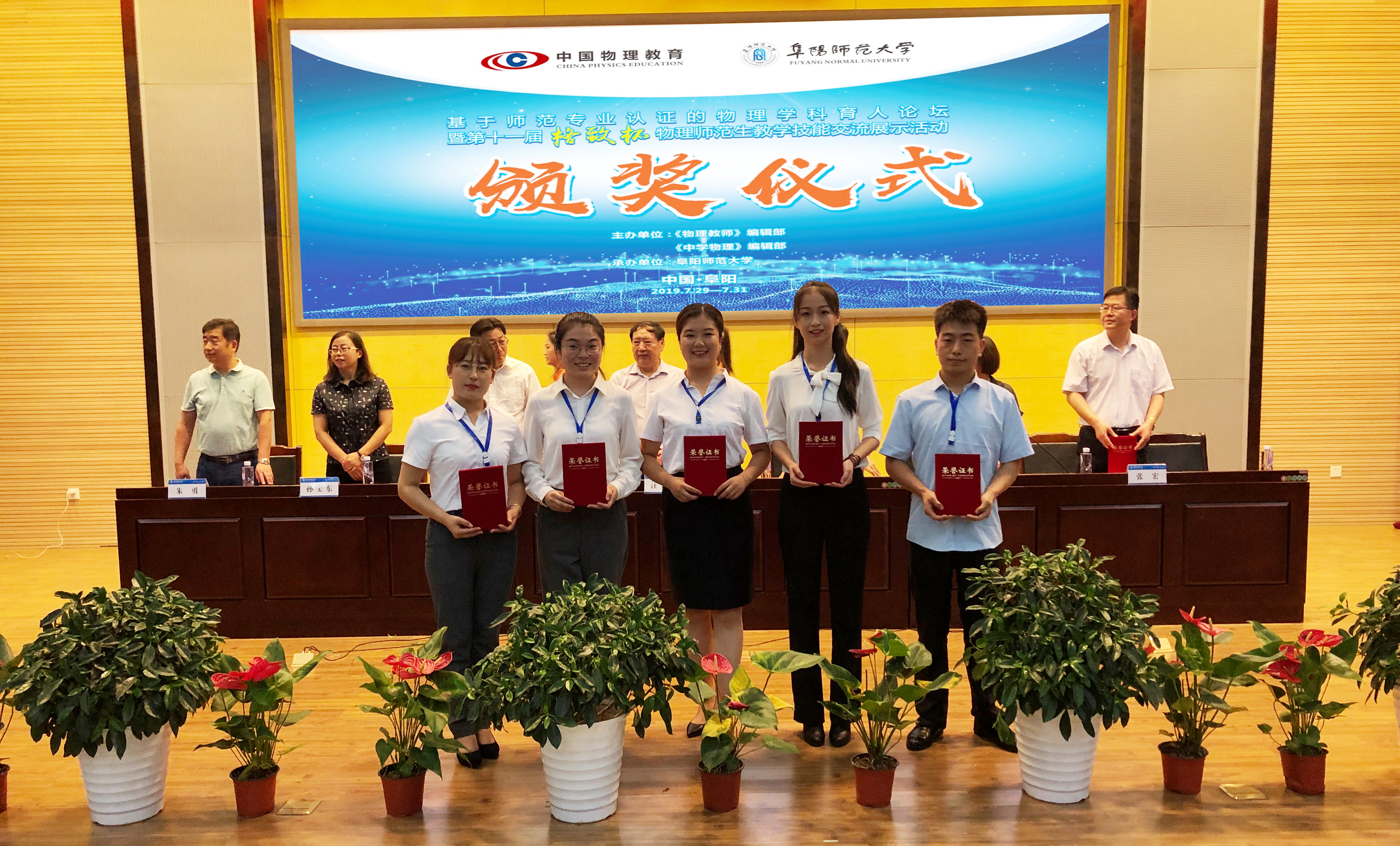 2019年7月29日-8月2日,中国教育学会物理教学专业委员会支持下的由《物理教师》和《中学物理》编辑部主办、阜阳师范大学承办的“基于师范专业认证的物理学科育人论坛暨第十一届‘格致杯’物理师范生教学技能交流展示活动”暨“第十一届全国“物理科学方法教育”学术研讨会”在安徽阜阳市举行,来自北京师范大学、华中师范大学、伟德体育官方网站、上海师范大学等全国63所师范院校的约150名教师和500名物理师范类本科生及硕士生参加了本次活动。