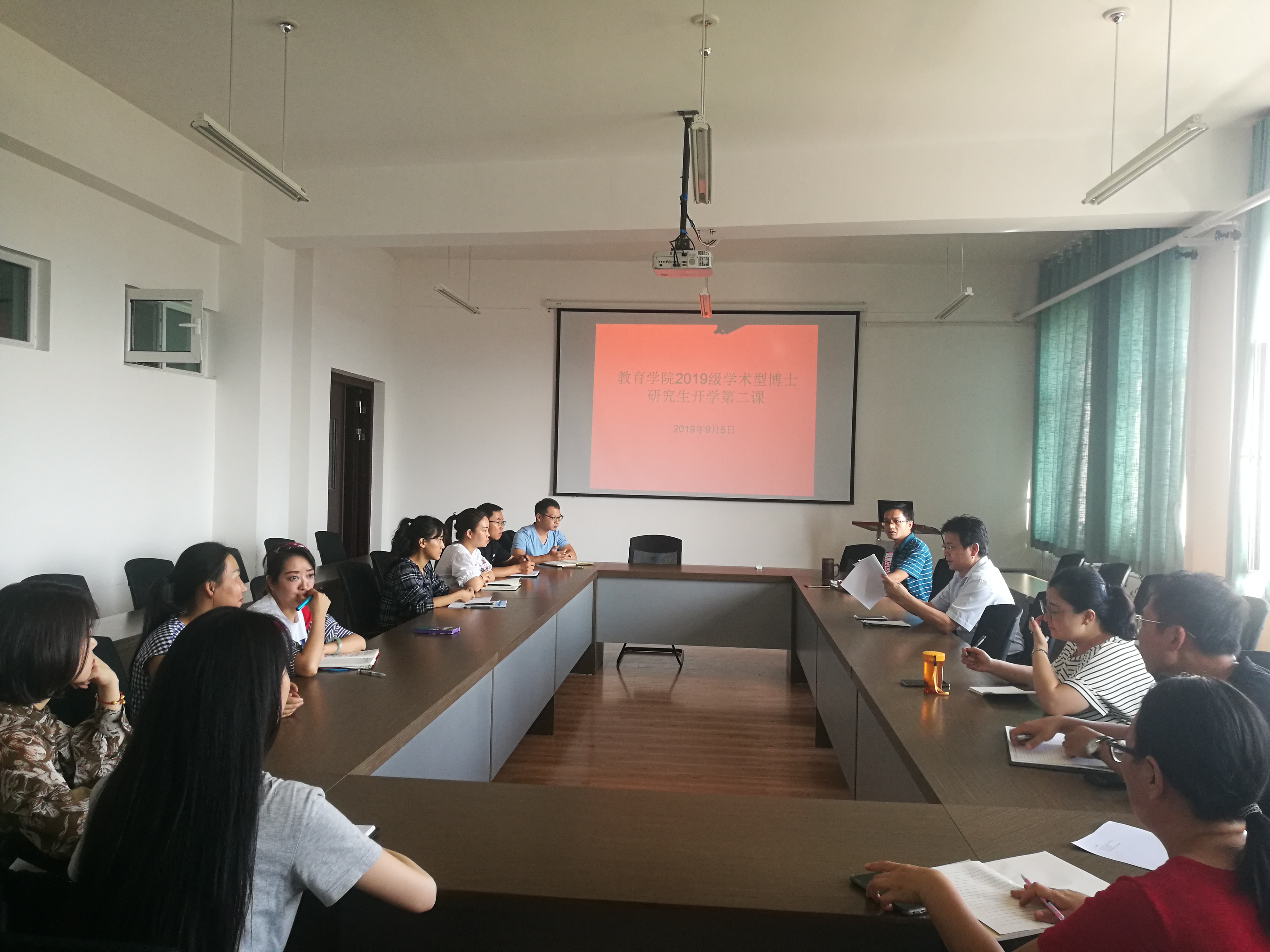 2019年9月5日,公司在特教楼507会议室举行2019级学术型博士研究生“入学第二课”。经理刘旭东、副经理周晔、博士生教务秘书王稳东、在校生博士生代表陈祖鹏以及全体2019级学术型博士生参加了本次活动。活动由周晔主持。