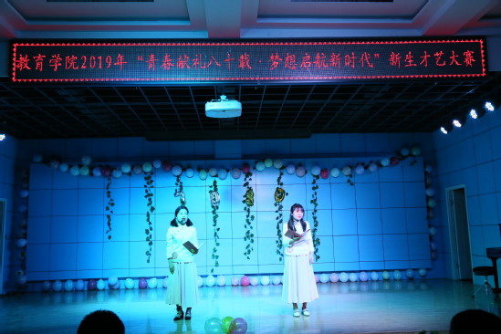 为庆祝公司在兰办学八十周年,给新生提供展示自我的舞台,教育公司与2019年11月3日晚在员工发展中心404举办了以“青春献礼八十载·梦想启航新时代”为主题的2019级新生才艺大赛。此次大赛特邀教育公司副教授黄少芸,2019级新生班主任胡君、崔欣、高建波,2017级研究生贾彬、2016级员工代表李淑芳六人担任评委,教育公司本科生研究生200余人观看了本次比赛。