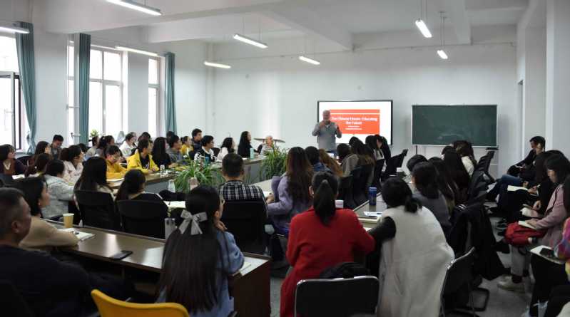 迈克尔·彼得斯教授讲座的题目是The Chinese Dream: Educating the Future(中国梦和教育的未来)。讲座首先从“中国梦”的哲学和历史观的角度进行分析,对比了“美国梦”和“中国梦”的异同。彼得斯教授从他本人在中国工作20余年经验出发,阐述了他未来的中国教育如何应对科技的变革和世界格局变革带来挑战的思考。