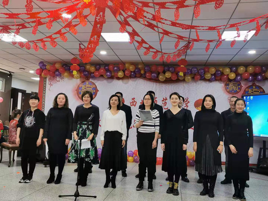 餐会之后,文艺表演正式开始。由学前教育系编排,公司教职工的孩子们表演的儿童舞蹈《加油歌》拉开了晚会的序幕,孩子们童真的笑容,可爱的舞姿让晚会欢笑声阵阵;学前教育系教师带来的歌曲《你笑起来真好看》彰显了教院老师们积极向上的青春活力;教育学系三位青年教师普通话与方言合编诗歌朗诵《走向未来》抒发了对公司美好未来的憧憬和期望,而他们的《欢乐健身舞》表演团队舞姿大方,赢得在场老师们雷鸣般的掌声;特教系老师的乐器表演《鸿雁》为大家带来了听觉盛宴,也展示了教院老师们深厚的专业素养;数学所带来的《数学老师的浪漫》《童年小摇车》让大家领略到了数学教师为人师表的浪漫情怀;文综所卓杰老师带来的泰语、日语、英语、俄语、汉语歌曲串烧,唱出了多才多艺的、热爱生活的教院人的心声;