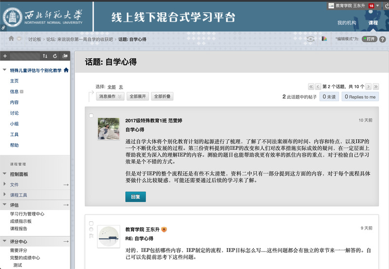 毕博系统也是公司老师普遍采用的教学形式。公司在教师教育课程改革过程中,建设了多门混合式课程。但疫情爆发后,许多老师仓促上阵,手忙脚乱。王东升老师帮老师们解答疑惑,录制小视频,一步一步引导大家。