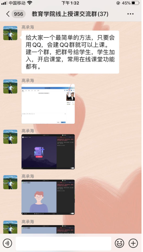 高承海老师是公司较早使用雨课堂授课的老师。2020春季,尽管他没有本科课程,但他毅然加入“线上授课交流群”,积极为老师们出谋划策,手把手地教。从身份绑定,到建立班级;从雨课堂到腾讯会议。“没课”的老师替“有课”的老师操心。