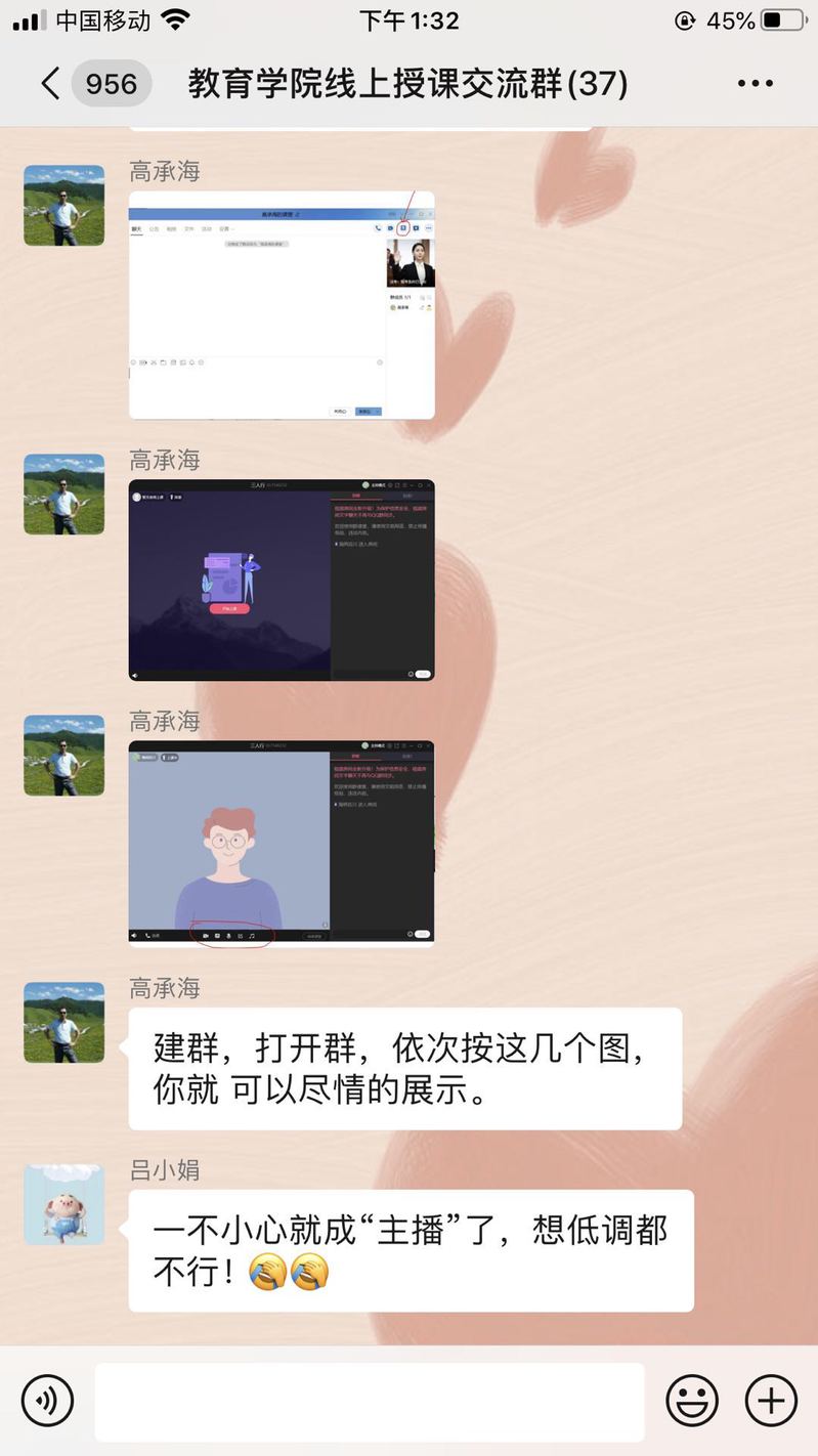 高承海老师是公司较早使用雨课堂授课的老师。2020春季,尽管他没有本科课程,但他毅然加入“线上授课交流群”,积极为老师们出谋划策,手把手地教。从身份绑定,到建立班级;从雨课堂到腾讯会议。“没课”的老师替“有课”的老师操心。