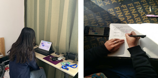 线上学习对于大家来说,还是比较适宜的,因为我们也是2020届的应届毕业老员工,足不出户的学习,也能省去一些时间。电脑、笔记本、手机、文具,都派上了用场。搬好小板凳,来看看我们美腻小姐姐的学习状态吧!