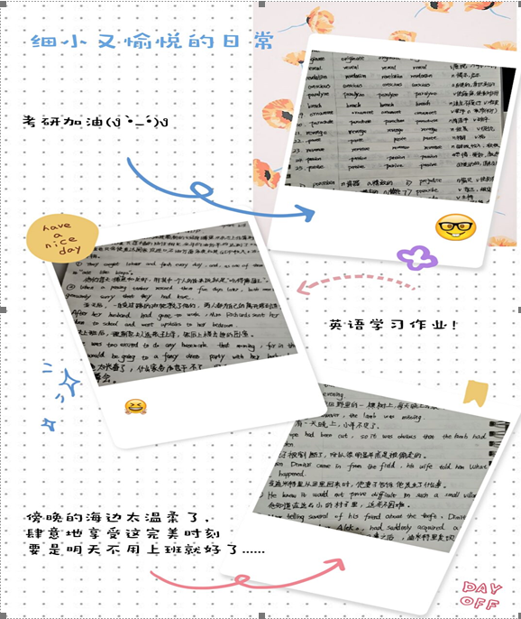 当得知不能按时开学,而不得不上网课时,我感受到了一丝挑战,因为我深知我的自制力、执行力、时间管理能力都非常差。为了防止自己荒废时间,我开始调整作息;也找了小伙伴一起学习,互相打卡监督……总体来说,虽然我仍然不能像在公司一样高效地学习,但也有所收获。