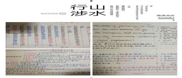 以前没有线上上过这么久的课,这次已经线上教学三周了,在线教学有利也有弊吧,优点我觉得老师们都很认真的,线上上课老师会把讲课和自己自学结合起来,很锻炼我们的能力,比如,从大篇文档中提取信息的能力,做PPT的能力等等,不好的地方我觉得就在于,有时特别容易走神,自制力不好的时候,听课也不是很认真吧。
