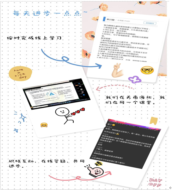虽然网络授课存在一些不足,但是老师和同学们对于传授知识与汲取知识的渴望与热情足以克服其诸多弊端。老师们尽心尽力地备课、授课,同学们认真听课、做好笔记。我们虽在天南海北,却又在同一个课堂。
