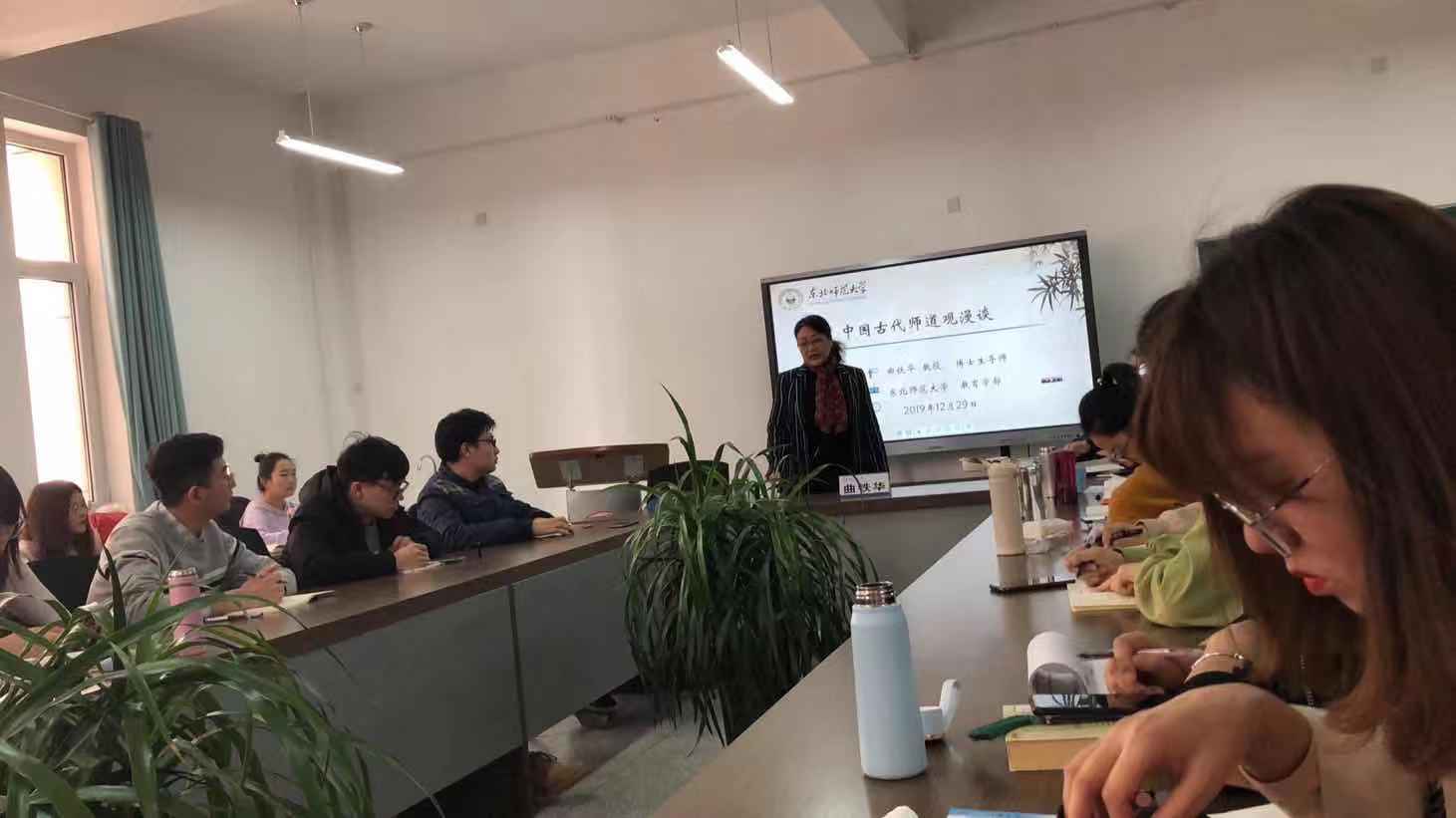 2019年12月29日下午3点至6点,东北师范大学曲铁华教授为公司师生作题为“中国古代师道观漫谈”的报告,报告会在特教楼508教室举行,由教育公司教育史专业学科负责人张学强教授主持,教育公司博士生与硕士生多人参与了这场报告会。