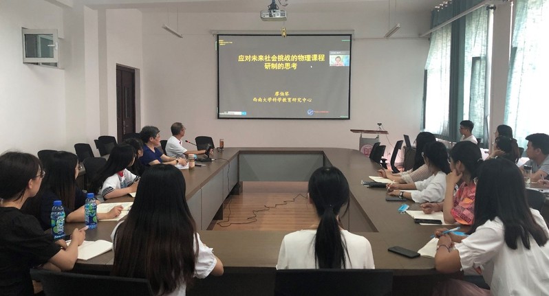 2020年7月5日,应公司邀请,西南大学物理公司教授博士生导师、国家中学物理课程标准研制组与修正组总负责人廖伯琴教授在线为公司师生作了题为《面对未来社会挑战的物理课程研制的思考》的学术报告,报告会由教育公司王太军副教授主持,来自教育公司、物理与电子工程公司的30余名师生在现场、百余名相关专业本科生、研究生在线参加了学术报告。