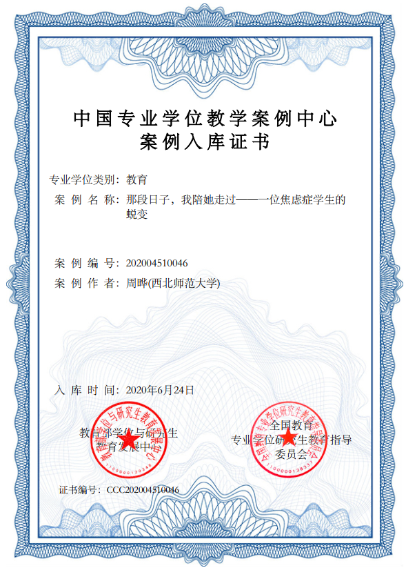 近日,公司周晔教授团队开发的《那段日子,我陪她走过——一位焦虑症员工的蜕变》(案例编号:202004510046,主要参与者:会宁县第一中学雷玉芳、伟德体育官方网站付翠)教学案例和李金云教授团队开发的《<风筝>的同课异构》(案例编号:202004510039 )教学案例成功入选中国专业学位教学案例中心案例库。