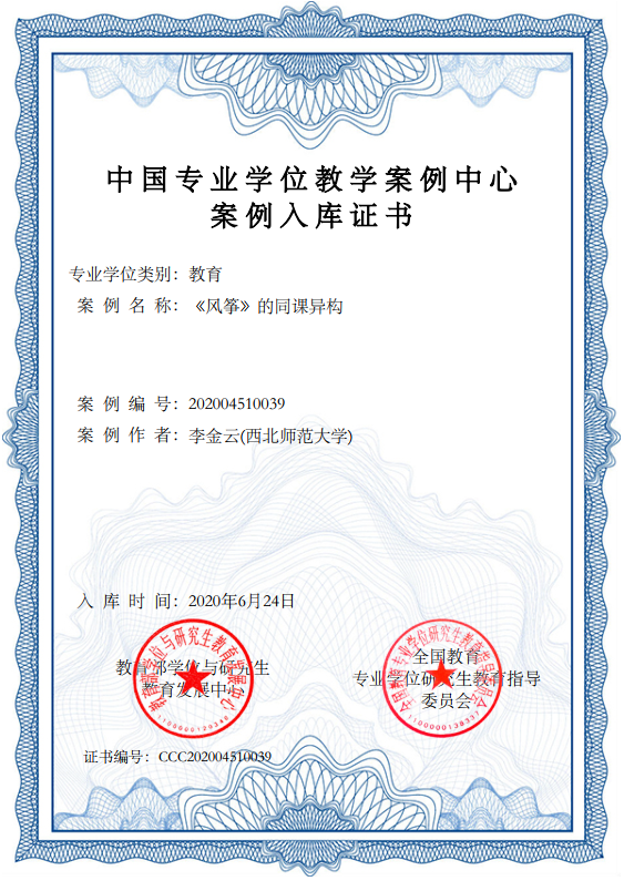《<风筝>的同课异构》适用于学科教学(语文)研究生《语文教育学》《语文课程与教学论》《语文教学设计与案例分析》等课程的教学。