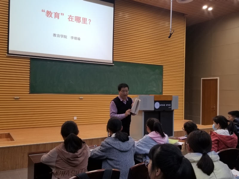 李瑾瑜老师通过漫画的形式,向同学们展示了当前中国教育的现状:公司看名次,家长看分数,升学焦虑带来的教育短视往往造成深远而持久的影响,并紧密联系员工在中小学阶段的求学经历,引导同学们从自身出发,思考真正的教育是什么。李瑾瑜教授认为,学习教育一定要有双重视角,既要把自己放在“教育”中,同时也要将自己置于“教育”外,从自己出发,从内心出发,从“我”身边的教育问题出发,冷静、理智地审视“我”经历过的“教育”,以及“我”正在经历的“教育”,并要求同学们通过反思自己面临的教育问题,转换角色与思维,重新思考在大学阶段“我”如何学习和生活,鼓励同学们在广泛阅读的基础上积极实践,学以致用,内化教育知识。