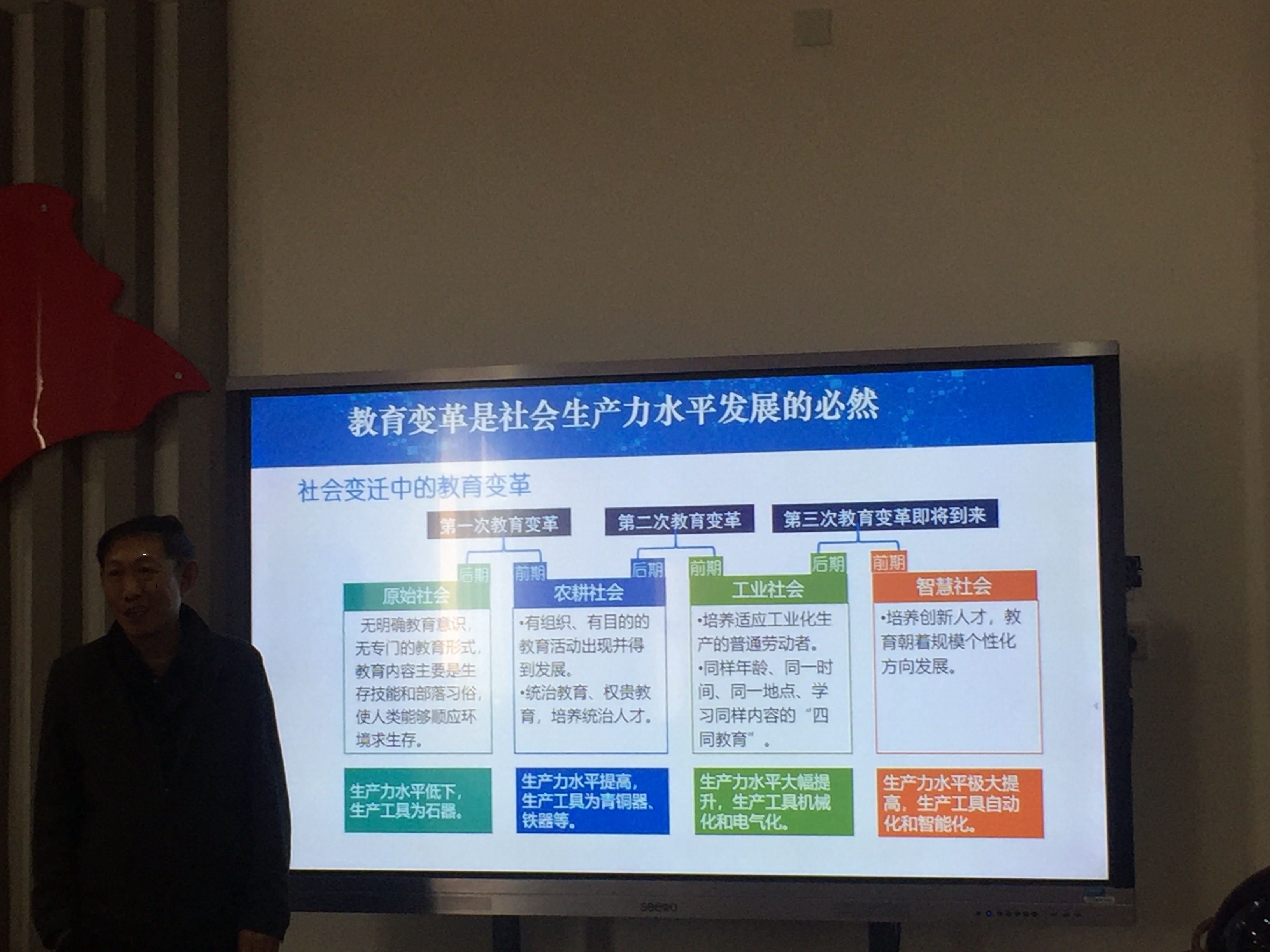 郭绍青对“互联网+ 教育应用软件系统”的功能进化过程进行了详细论述,提出了知识共享理念、知识生成与交互理念、精准个性化与智能化理念等主导的教育应用软件系统及影响“互联网+ 教育”技术环境发展的路径与功能特征,介绍了六个体现智力共享、学习方式变革、教学组织变革等蕴含“互联网+ 教育”推动创新发展特征的案例。提出了不同社会形态需要与之相适应的教育生态的观点,界定了智慧社会是机器智能与人类智慧融合的社会;机器智能与人类智慧相融合指向人的智慧启迪与培养的智慧教育时代是教育的第三次革命的认识;学习环境工程学会成为教育学二级学科,教育管理学将融入监测预警、干预调控、精准决策等理论与方法体系建设的趋势。同时,还特别强调了动态学习组织将替代班级授课制,传统的教师、员工、学习内容三要素结构会被多元化改变,公司的虚实融合无边界的发展趋势以及学习者精准画像对教育评价体系的挑战及其对教育学理论继承、发展、创新的诉求。