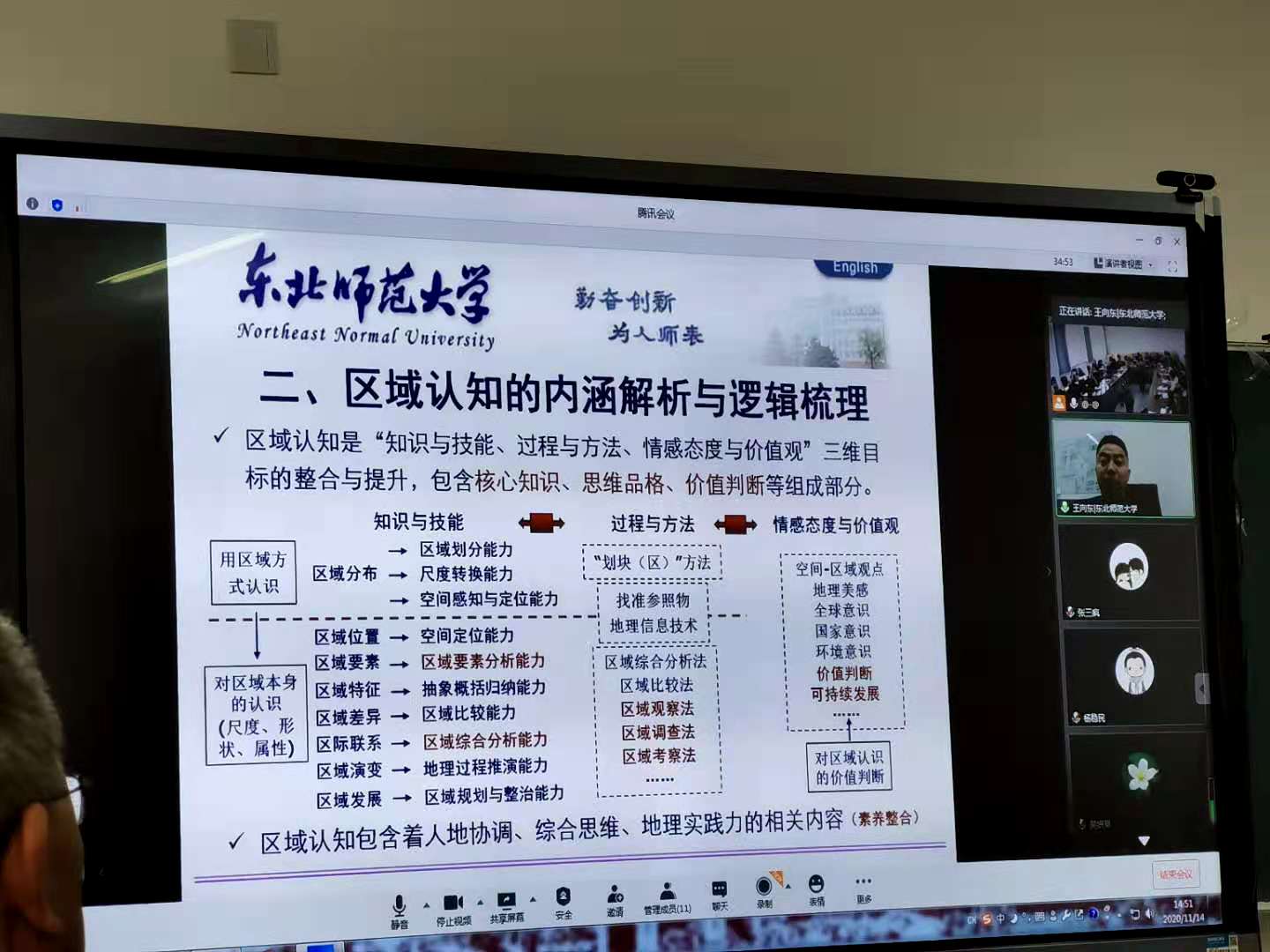 受伟德体育官方网站教育公司邀请,东北师范大学教授、博士生导师,东北师范大学教务处副处长、教师教育研究院副经理王向东老师,于2020年11月14日下午以线上方式作了题为“素养整合视角下区域认知的内涵梳理与实践探索”的学术报告。报告会由伟德体育官方网站教育公司赵生龙副教授主持,共有来自伟德体育官方网站教育公司地理课程与教学论、学科教学(地理)方向的研究生,伟德体育官方网站地理与环境科学公司本硕一体生、部分地理科学专业的本科生等40多人在特教楼508教室聆听了报告。据悉,天水师范公司资源与环境工程公司的10名学科教学(地理)方向的研究生,兰州城市公司地理与环境工程公司地理科学专业的部分本科生也有组织地聆听了报告。