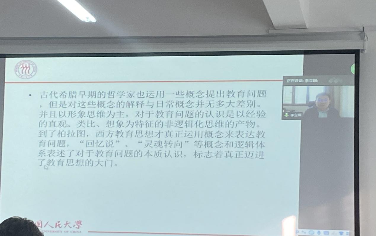受伟德体育官方网站教育公司邀请,中国人民大学教育公司教授、副经理、博士生导师;教育部中国人民大学教育发展与公共政策研究中心副主任;中国高等教育学会学术委员会委员;中国学位与研究生教育学会学术委员会委员李立国老师,于2020年11月10日下午以线上方式作了题为“教育思想史的地位与价值”的学术报告。报告会由伟德体育官方网站教育公司王兆璟教授、刘丽平副教授主持,共有来自伟德体育官方网站教育公司教育史、比较教育学、高等教育学专业的研究生与博士生等30多人在特教楼510教室聆听了报告。