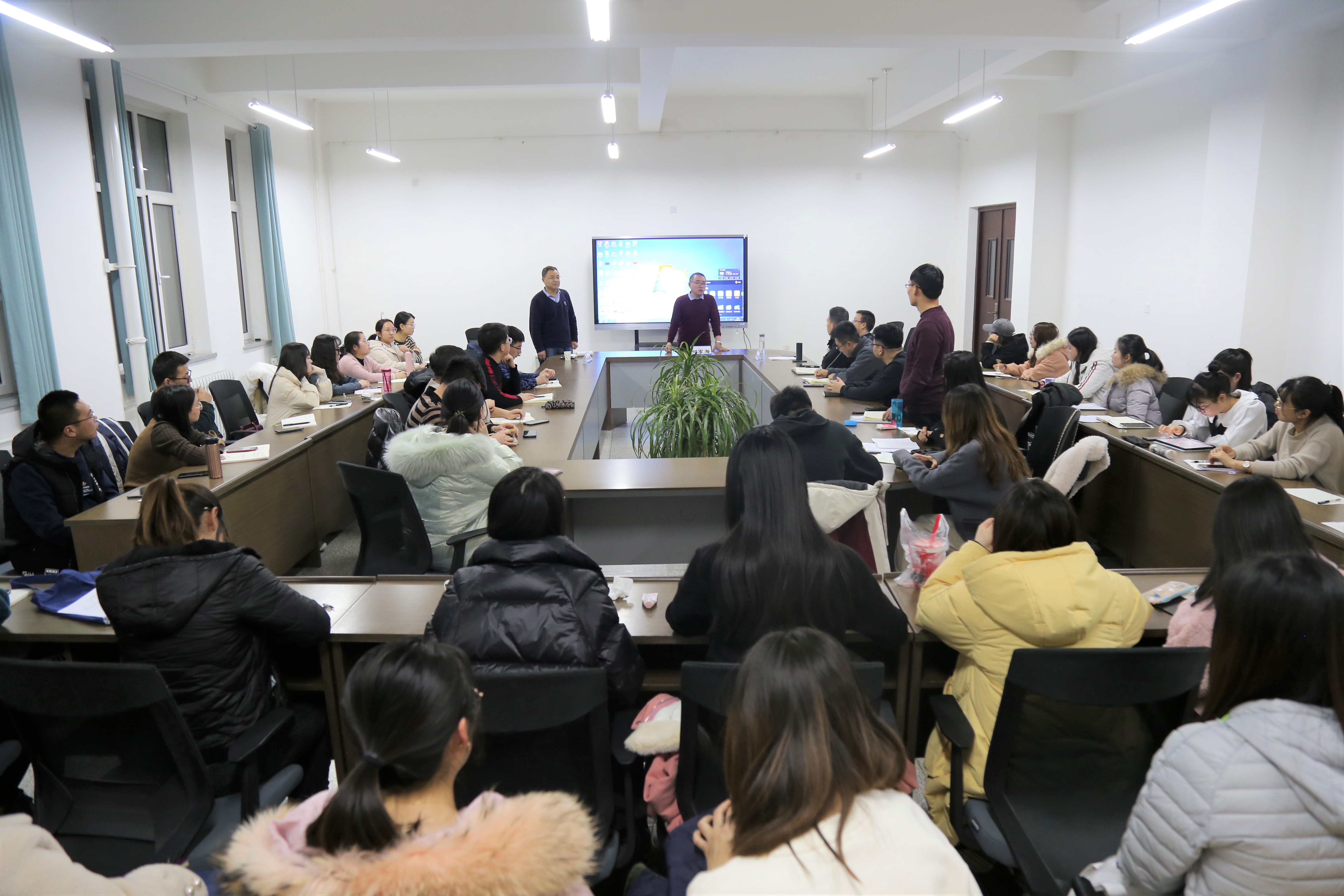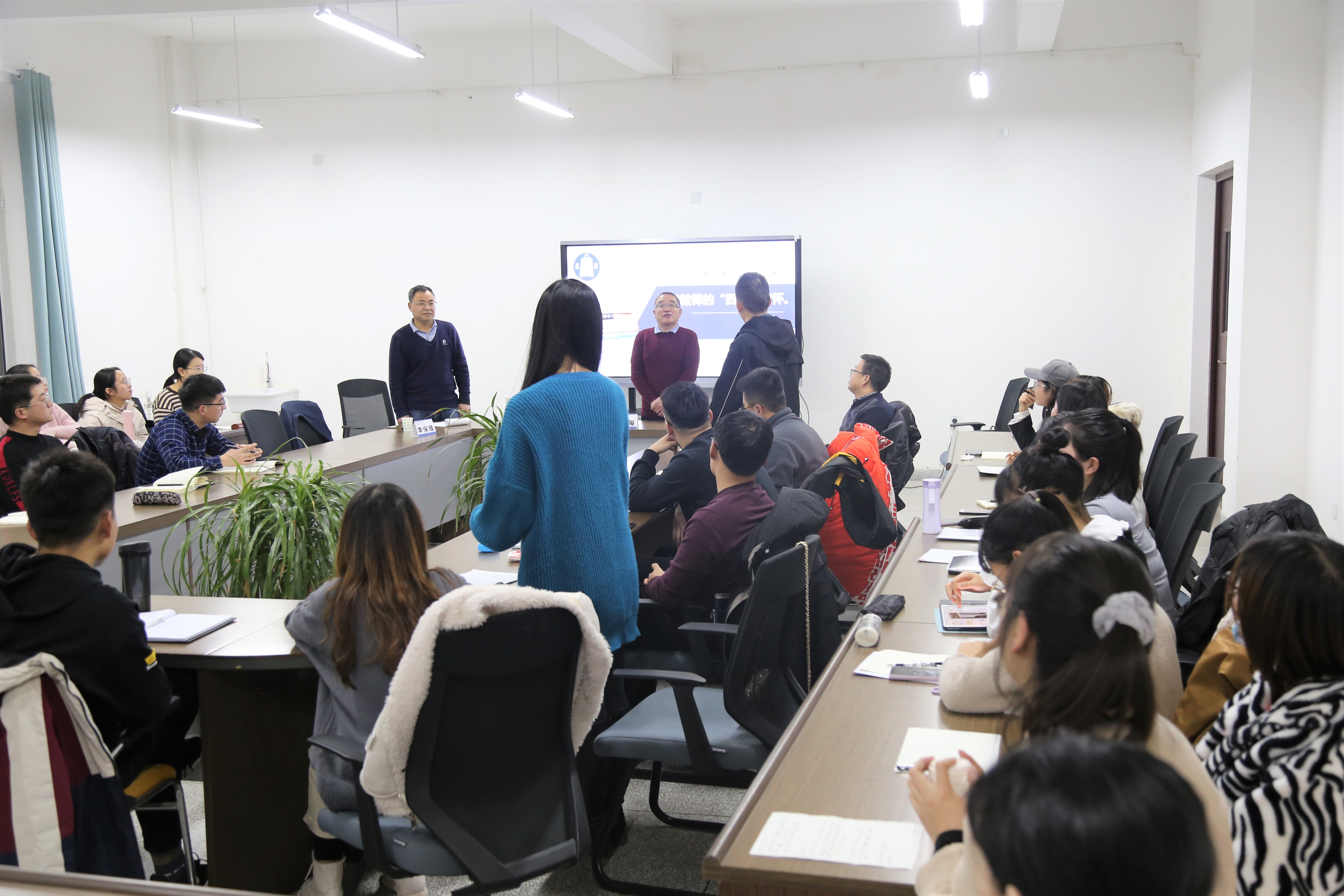 报告会期间,何老师与研究生进行了积极互动,并就“一路走来的专业发展历程”、“数学文化如何在课堂中进一步提升”、“数学基本活动经验与数学解题技巧的关系”、“新入职教师如何把握课堂”等问题进行了耐心细致的回答。最后张定强教授、李保臻教授对此次报告分别作了简要并激励人心的总结,报告会在员工们热烈的掌声中圆满结束。