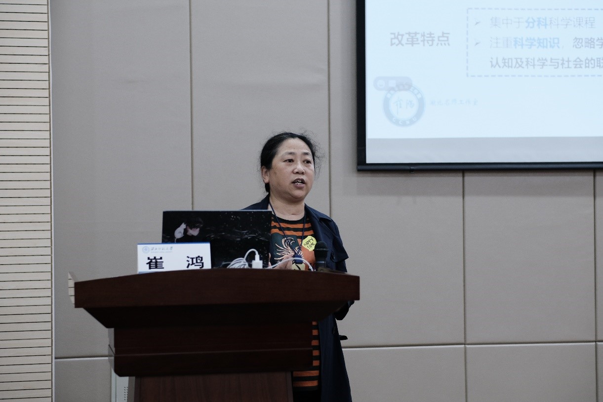 报告会上,崔鸿教授从历史的回声、现实的映刻、未来的追求三个主题,对科学教育的历史、现状及未来进行了详细阐述,分析了坚持课程改革的缘由、多元视角下公司科学教育的现状、发展员工科学素养的途径三个层面的问题。