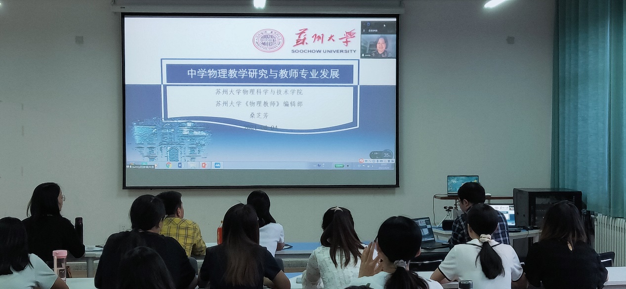 报告会上,桑芝芳教授从新时代员工物理学科核心素养培育的大背景下,解读了物理教师专业发展的新要求,阐述了物理教师专业发展息息相关的教学研究的内容与方法、学业质量评价与高考考试评价改革、教学研究成果撰写与发表等多方面内容,并提出了若干具有实践指导意义的思考与建议。