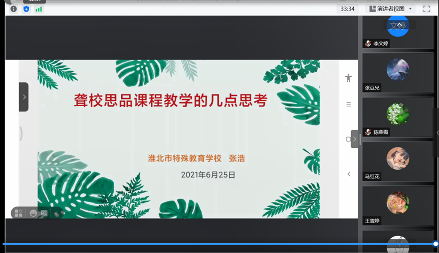 2021年6月25日下午,应伟德体育官方网站教育公司的邀请,淮北市特殊教育公司高级教师张浩为特殊教育专业本科生、研究生30余人进行了《聋校思想品德课程教学的几点思考》的线上报告。