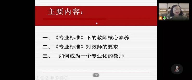10月29日,本学期专业导引之三——《如何做一个专业化的教师》,由学前教育系郑名教授主讲。本次导引课受疫情影响,在线上依托腾讯会议平台开展,2021级本科生共计160人参加了本次活动。