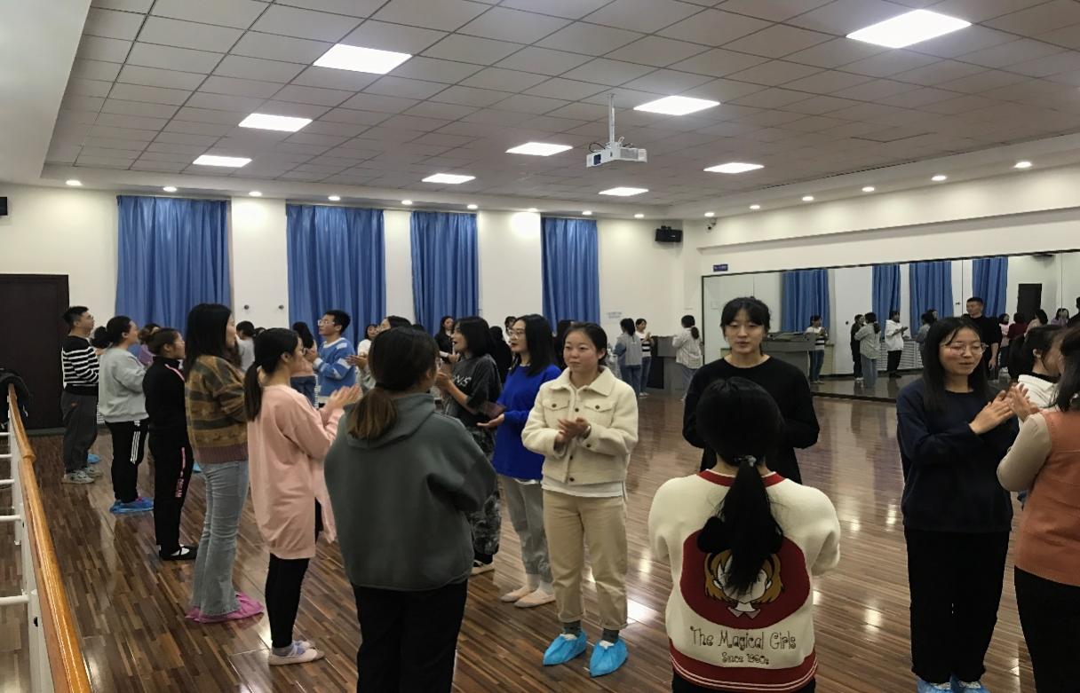 2021年10月16日下午,应公司邀请,兰州大学附属中学音乐教师、伟德体育官方网站音乐公司研究生教学法外聘教师刘庆赟老师为公司学前教育专业员工组织了一场以律动与儿童音乐潜能开发为主题的音乐工作坊。学前教育专业师生共50余人参与了活动。