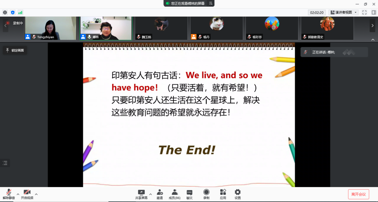 2021年11月18日晚,四川师范大学伟德国际victor1946博士生导师、高等教育研究所所长傅林教授应公司邀请,在线为公司各级研究生做了题为《美国印第安人高等教育的独特形式——部落公司》的线上学术报告。报告由滕志妍博士主持,约100多名师生参加了此次活动。