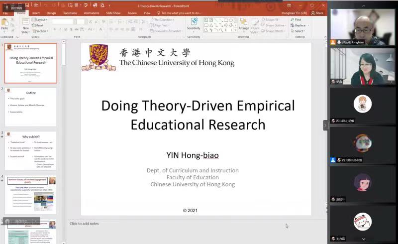 第三场报告于12月23日晚举行,主题为“如何做理论引领的教育实证研究”。尹弘飚教授根据自身的研究经历主要从目标、选择跟随和修改理论以及研究的持续性三个方面和师生进行理论引领的教育实证研究的分享。最后尹弘飚教授回答了线上的师生们提出的问题,并对相关研究生同学的学习进行了指导。