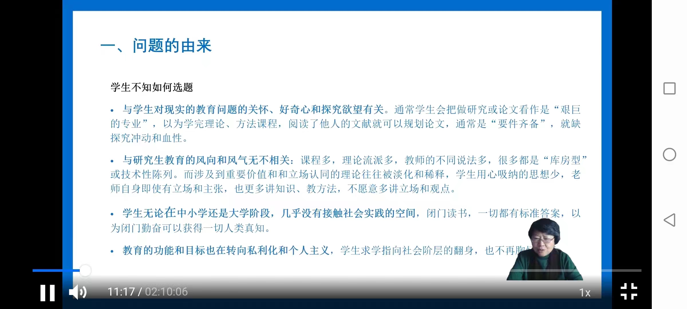 郑新蓉老师以自己在指导研究生过程中产生的困惑为切入点,开始了本次学术报告。报告内容包括:问题的由来、关于“学理”和“事理”的辨析、理论的价值和思想问题等四个方面。在问题的由来方面,郑老师对员工在研究选题和理论基础方面存在的问题进行了分析并给出了建议,剖析了当下“重器不重道,以方法为王道”,以及普遍存在的表达与写作艰难的现象。在关于“学理”和“事理”的辨析方面,郑老师通过展示自己收集的13名受访者对于学理和事理的自我认识和理解,从认识、生成、功能和属性四个方面对学理和事理及其关系进行了分析。在“理论的价值”这一部分,郑老师重点围绕理论与常识、理论自身的样态、特点和功能进行讲解。对于思想问题,郑老师不仅表达了自己对思想的认识,而且阐述了互联网时代下的思想,以及社会生产方式与思想的关系。