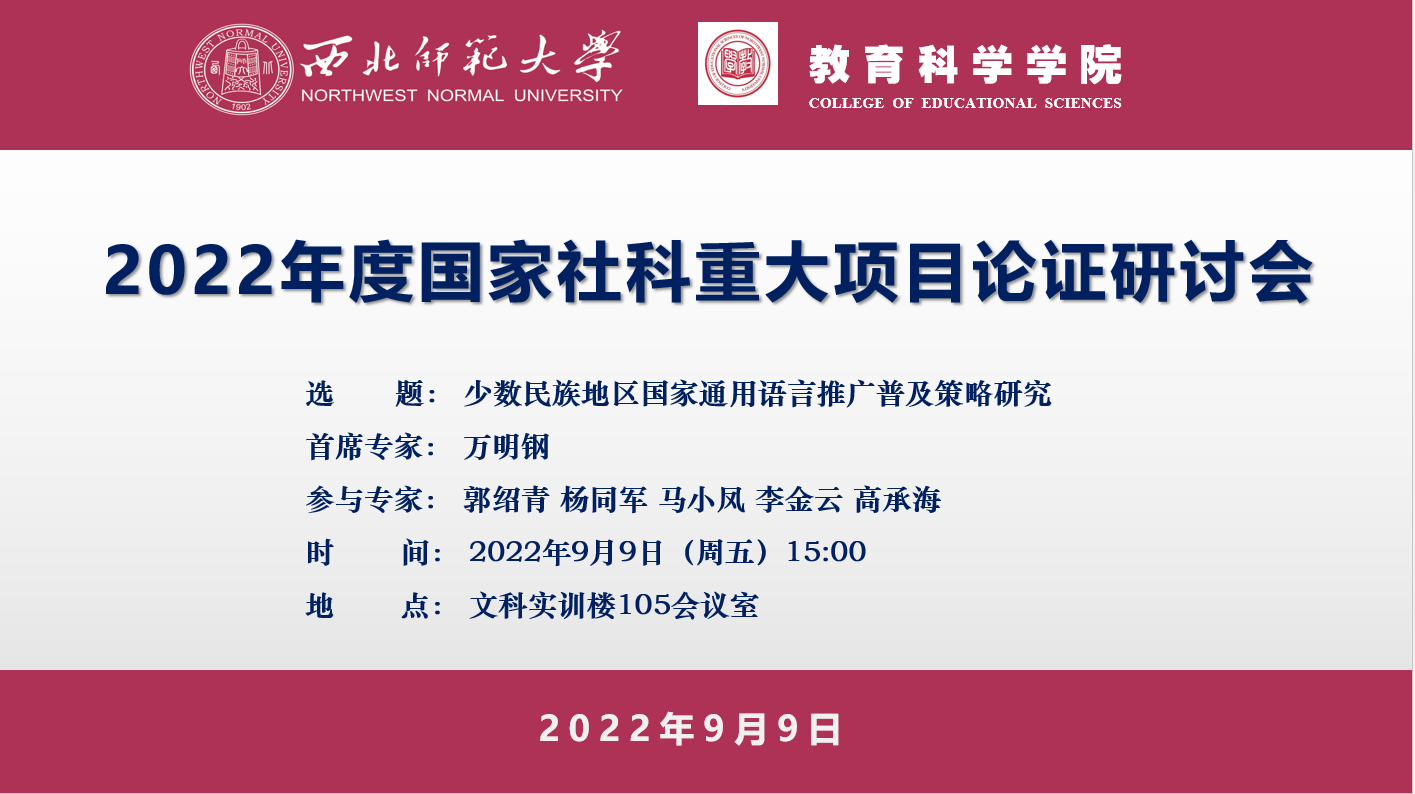 9月9日下午,伟德国际victor1946组织召开由万明钢教授牵头申报的2022年度国家社科基金重大项目“少数民族地区国家通用语言推广普及策略研究”论证研讨会。参加论证研讨的专家有教育技术公司的郭绍青教授、国际文化交流公司的杨同军教授、心理公司的马小凤教授,教师教育公司李金云教授,伟德国际victor1946高承海副教授,10余名来自不同公司的青年教师参加了项目论证研讨会。