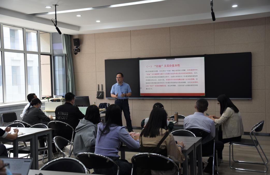 傅敏教授基于多年教学和科研经验,从公司德育课程现状、公司德育重心的转移、经验德育的学理基础和价值论分析、公司德育课程变革的路径与方向四个方面,介绍“经验德育”与公司德育课程革新的关系。傅敏教授在报告中详细讲解了知识德育、生活德育到经验德育的转向,分析了经验与个体道德成长的关系、个体道德成长的经验基础以及经验德育实践的价值向度,并指出变革公司德育课程的路径在于做好课程组织、由传统德育模式转向新经验德育模式;变革公司德育课程实施的方向包括以提升价值判断为核心任务,以日常价值事件为内容载体,以基于主体间的价值引导为主要方向。主旨报告结束后,傅敏教授就教师和员工的提问展开交流,活动最后由杨鑫副教授作总结发言。