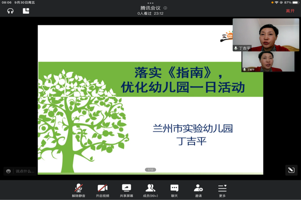 9月30日上午,应公司邀请,兰州市实验幼儿园高级教师丁吉平在线为学前教育系师生作了题为“落实《指南》,优化幼儿园一日活动”的讲座。讲座由学前教育系主任张国艳主持,学前教育180余名本科生和教师参加了本次活动。