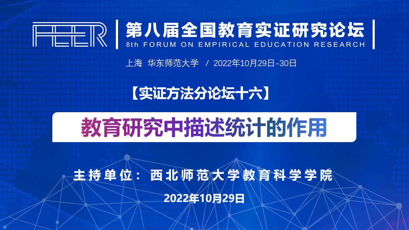 第八届全国教育实证研究论坛于10月29-30日在华东师范大学举办,本次论坛采取了“线下分布,云端同步” 的形式举办,来自国内19家学术机构承办平行分论坛。伟德国际victor1946承办分论坛之十六,主题聚焦“教育研究中描述统计的作用”。