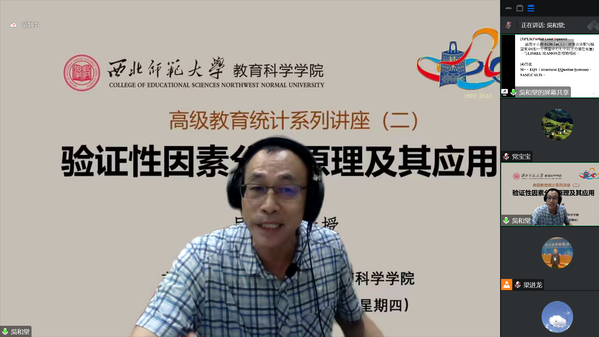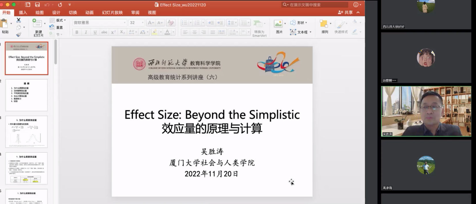 为提高伟德国际victor1946教师和员工数据统计分析能力,促进教育研究高质量发展,产出高水平研究成果,2022年10月至11月,教育科学公司以腾讯会议和线上直播形式举办了首期“教育高级统计系列讲座”,主讲嘉宾由台湾高雄师范大学、南京大学、厦门大学的3位统计专家组成,共举办了7场专题讲座。伟德国际victor1946部分教师和研究生全程参加学习,同时,线上直播还吸引了来自北京师范大学、华东师范大学、浙江大学、南京大学、西南大学、东北师范大学等全国几十所高校和科研单位共5000余名师生参与。