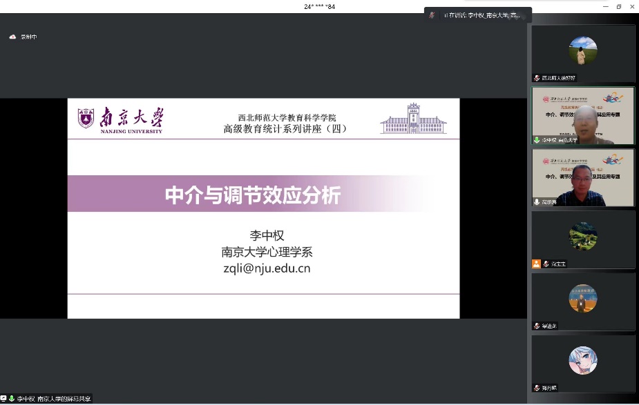 10月19日和22日,南京大学李中权教授分别做了《中介、调节效应的原理及其应用专题》《多水平线性模型的原理及其运用专题》讲座,通过实践案例分析与数据分析演示,重点讲解了“中介与调节效应”的原理与运用,多水平线性模型的操作步骤与应用前景,引导师生如何进行数据深度挖掘。