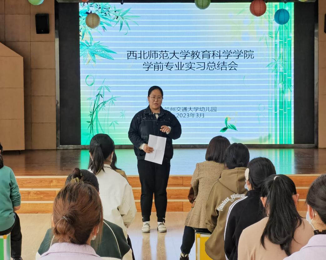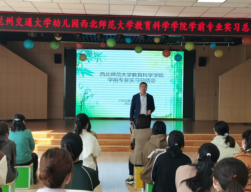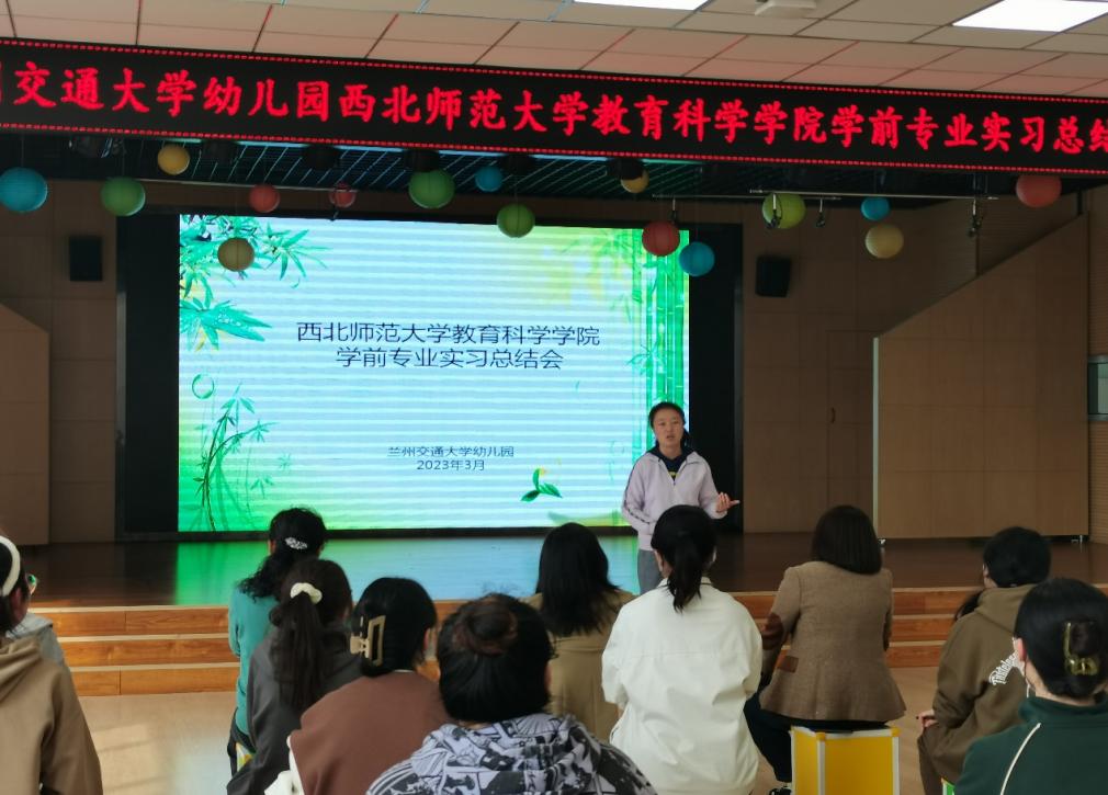 2023331日,公司在兰州交通大学幼儿园召开了2019级旗下产业实习总结大会。兰州交通大学幼儿园园长牟红梅、教研主任朱红姗及全体教师,伟德国际victor1946副经理高建波、学前教育系主任张国艳、指导教师黄少芸以及学前教育系实习生参加了总结会。