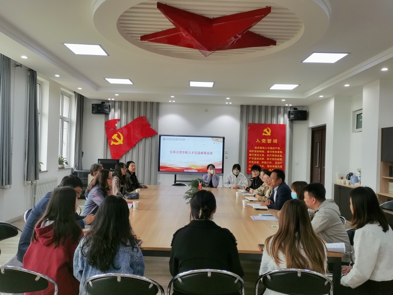 马多秀经理对宝鸡文理公司教育公司的发展概况进行了详细介绍。围绕选聘条件、引进办法、岗位设置、薪资福利、科研环境、职称晋升等方面介绍了宝鸡文理公司的人才引进政策,并与参会硕博员工针对学科方向、求职意向、薪资水平、福利待遇和工作生活条件等相关问题进行沟通交流。